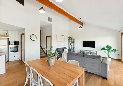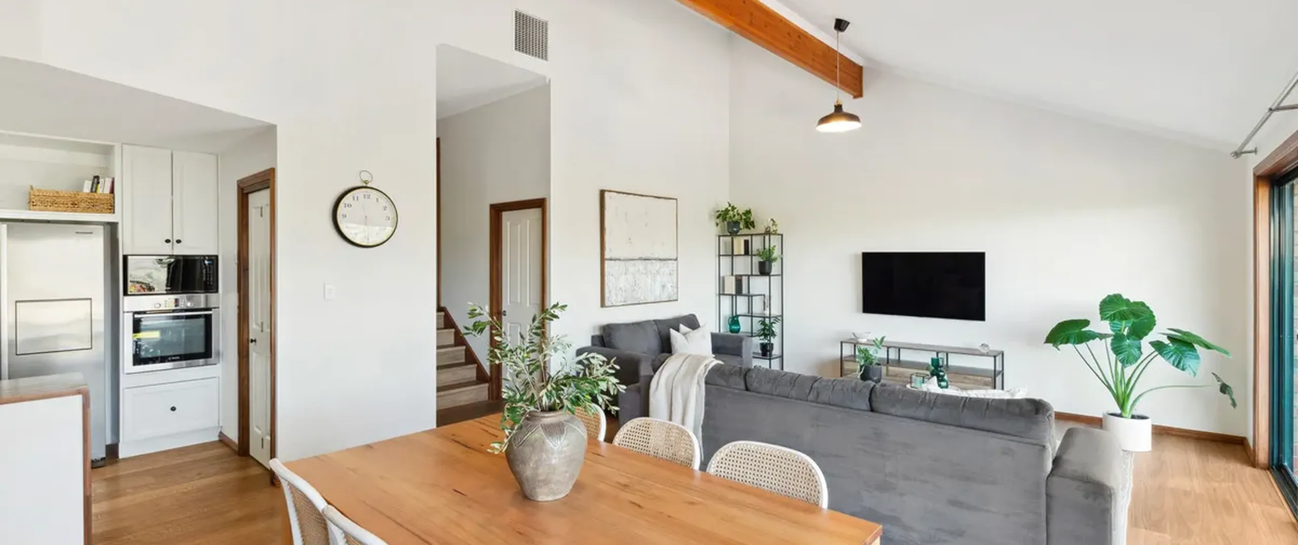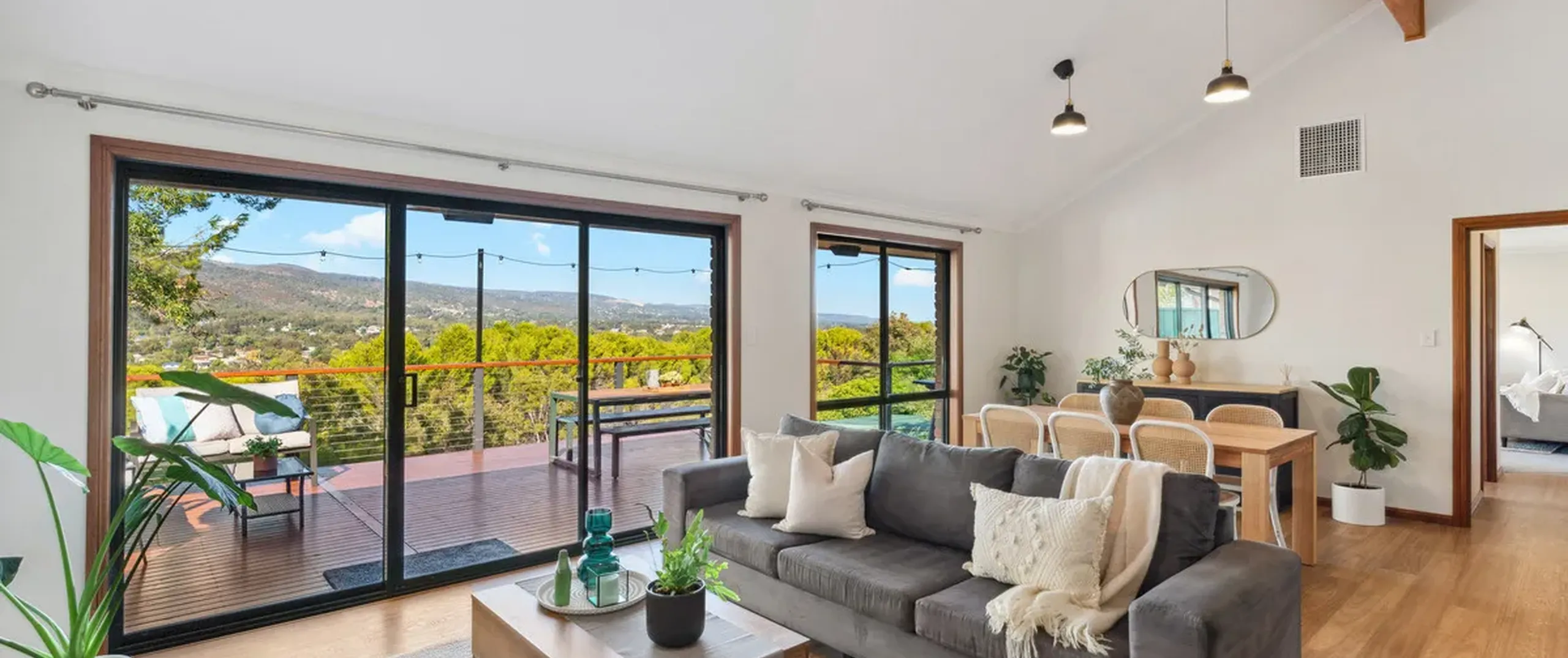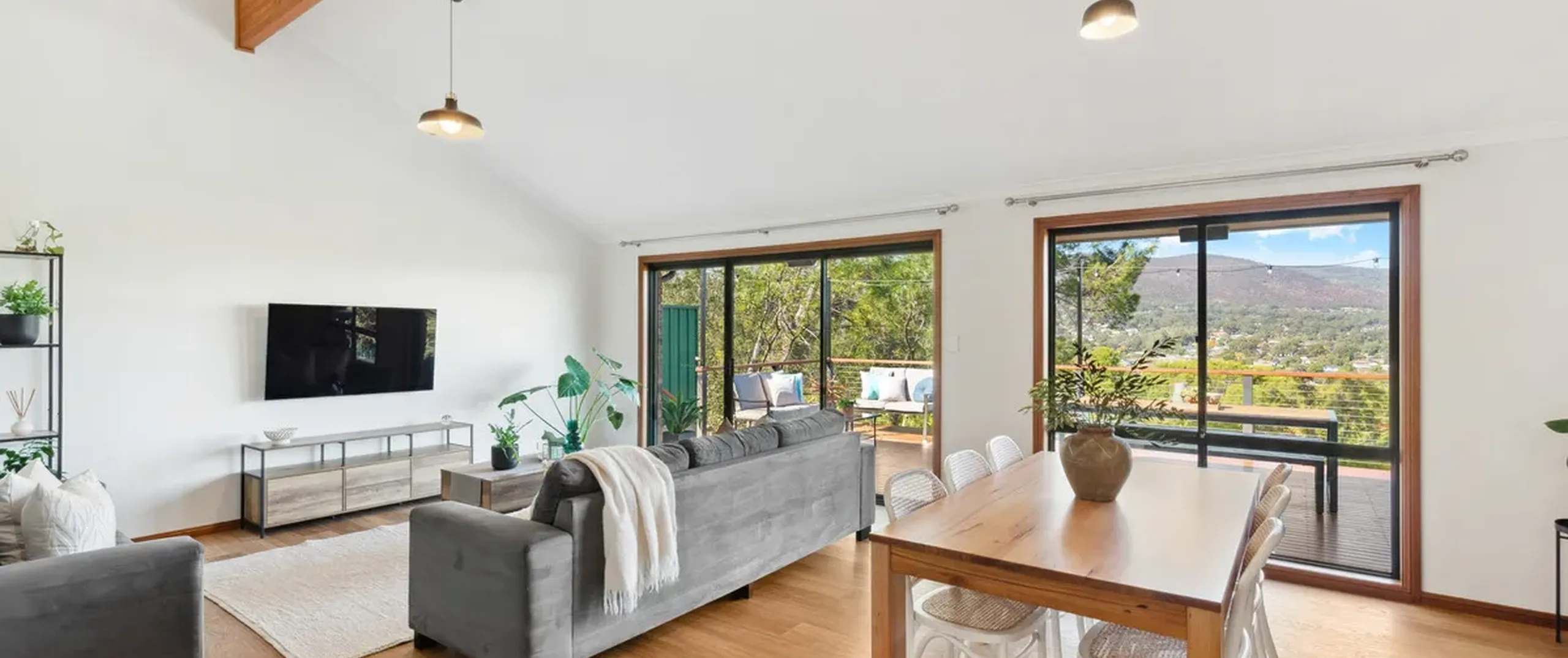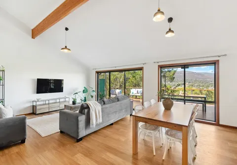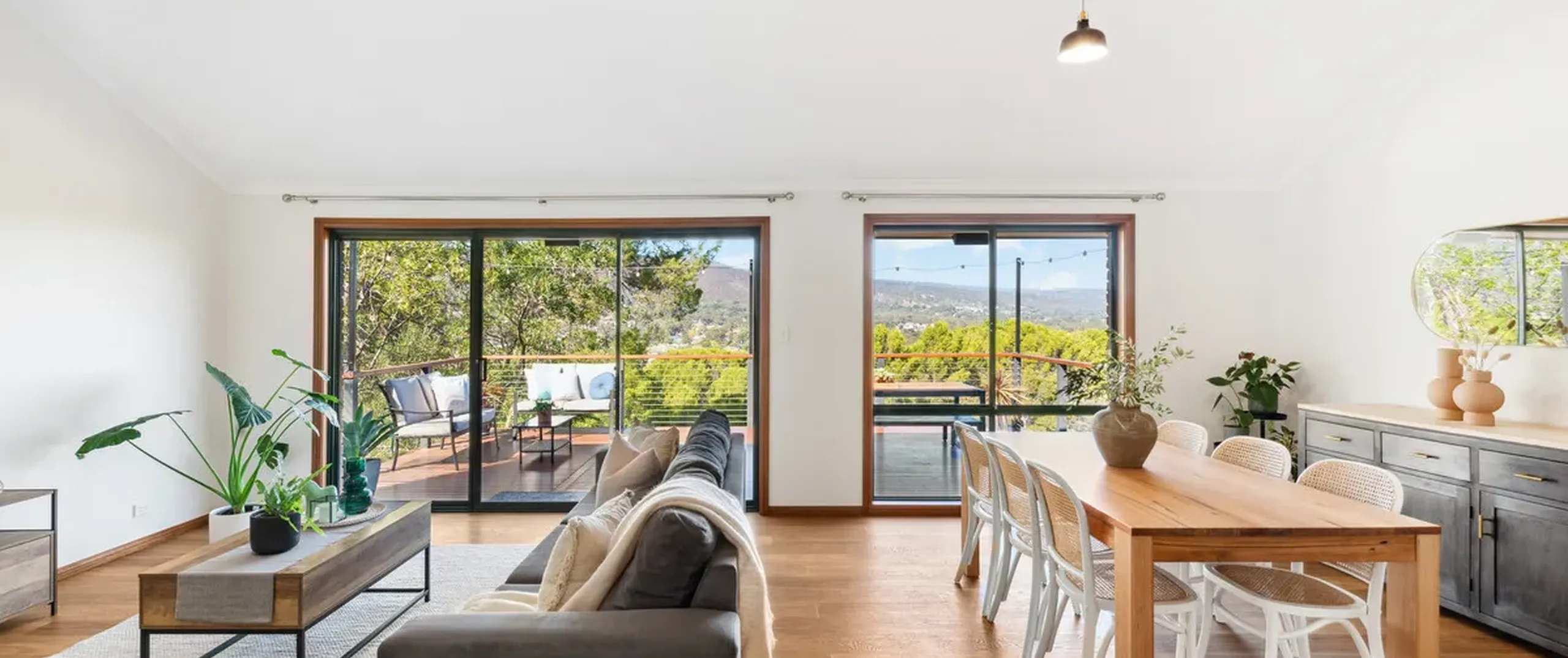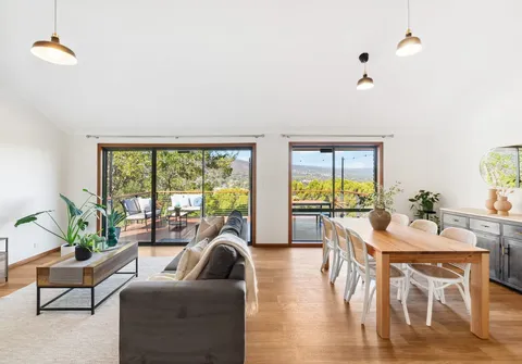 - Spacious family and meals room with pendants, seamlessly connecting to decked balcony, offering a harmonious indoor-outdoor environment for gatherings