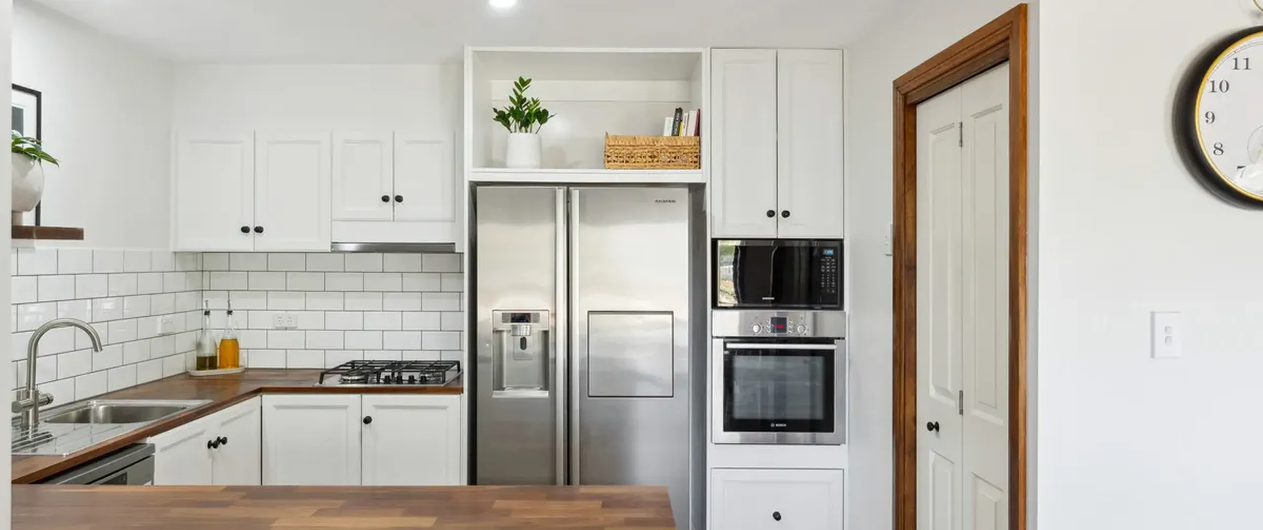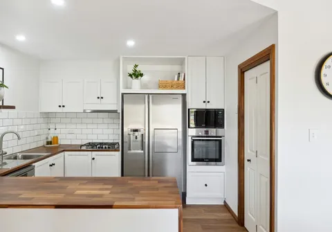 - Contemporary kitchen boasting stainless steel appliances, gas cook top, dishwasher and a generous walk-in pantry
