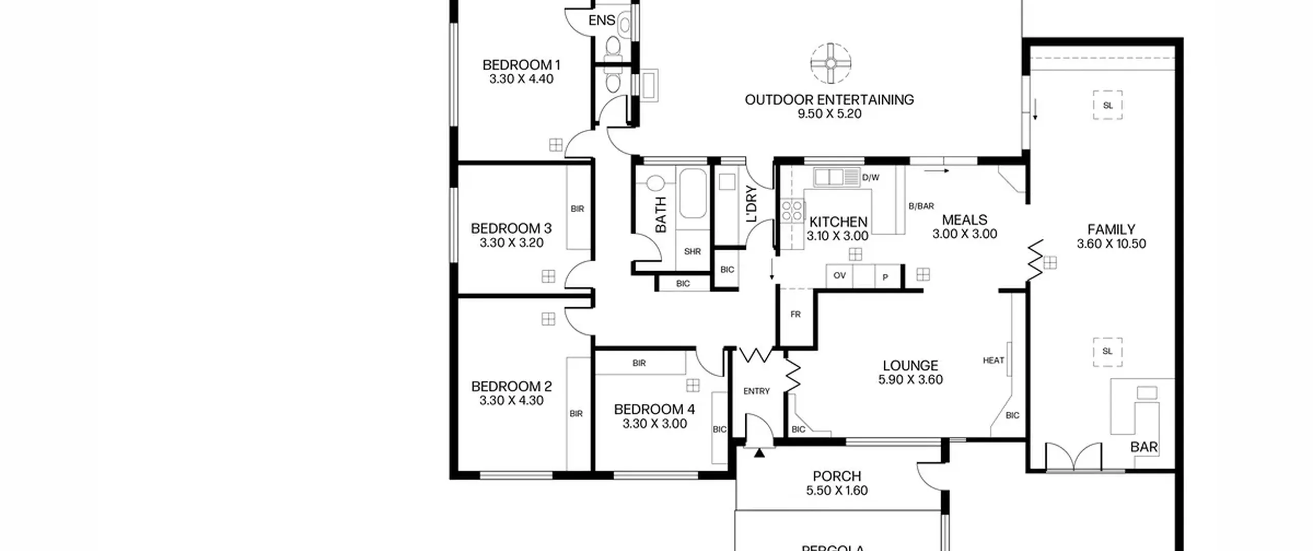Inside, you’ll find multiple living spaces adorned with quality features, modern flooring, and elegant finishes. A cosy lounge with a heater provides the perfect retreat, while the stylish kitchen is a culinary haven with sweeping benches, modern appliances, and a 900mm gas cooktop. Flow seamlessly into the entertainer’s family room, complete with a bar, creating the ultimate space for gatherings and celebrations.