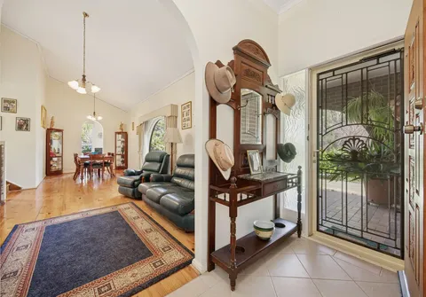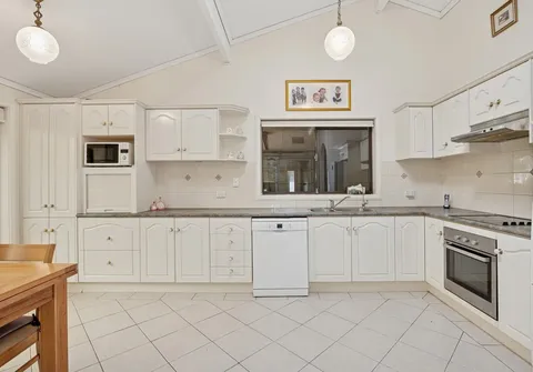 A light-filled and welcoming family lounge provides a warm, comfortable space for everyday living. Flow seamlessly into the generously proportioned kitchen, featuring a skylight, plenty of storage and roller shutters throughout. The home also offers a versatile sitting area, perfect for entertaining guests or enjoying quiet relaxation.
