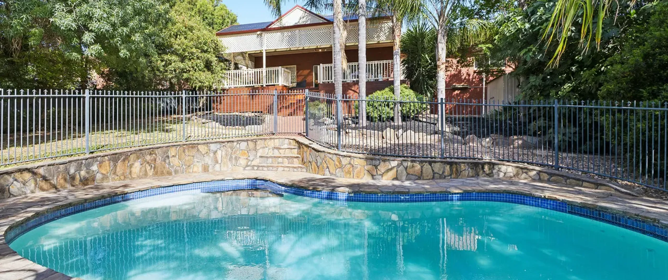 - Sparkling inground swimming pool with solar heating