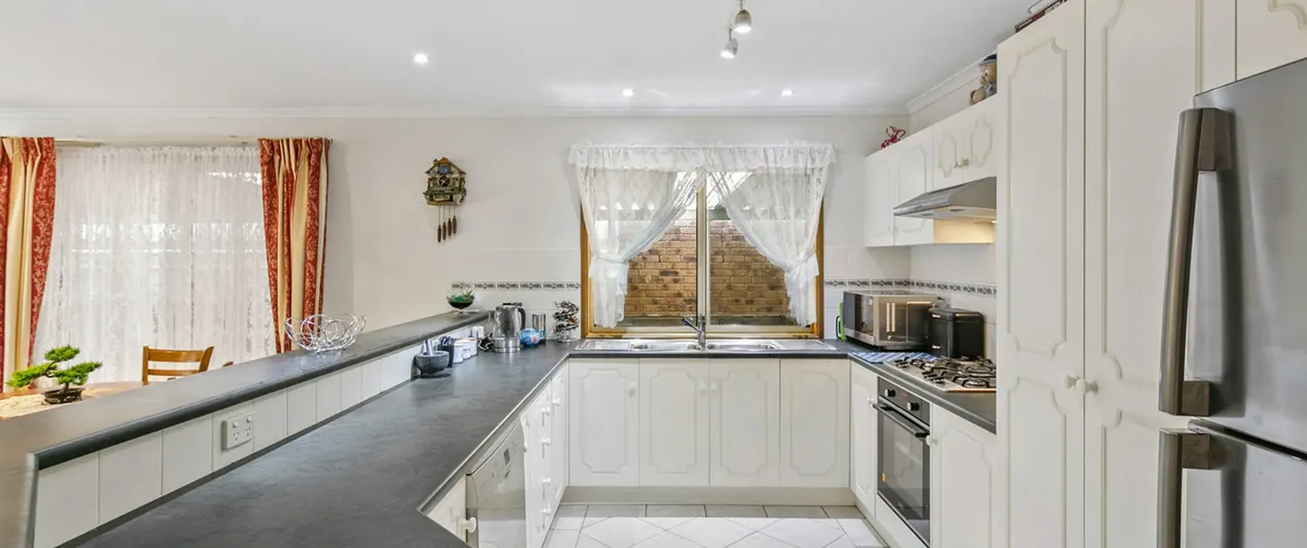 - Modern kitchen with dishwasher, updated gas cooktop and ample bench and cupboard space