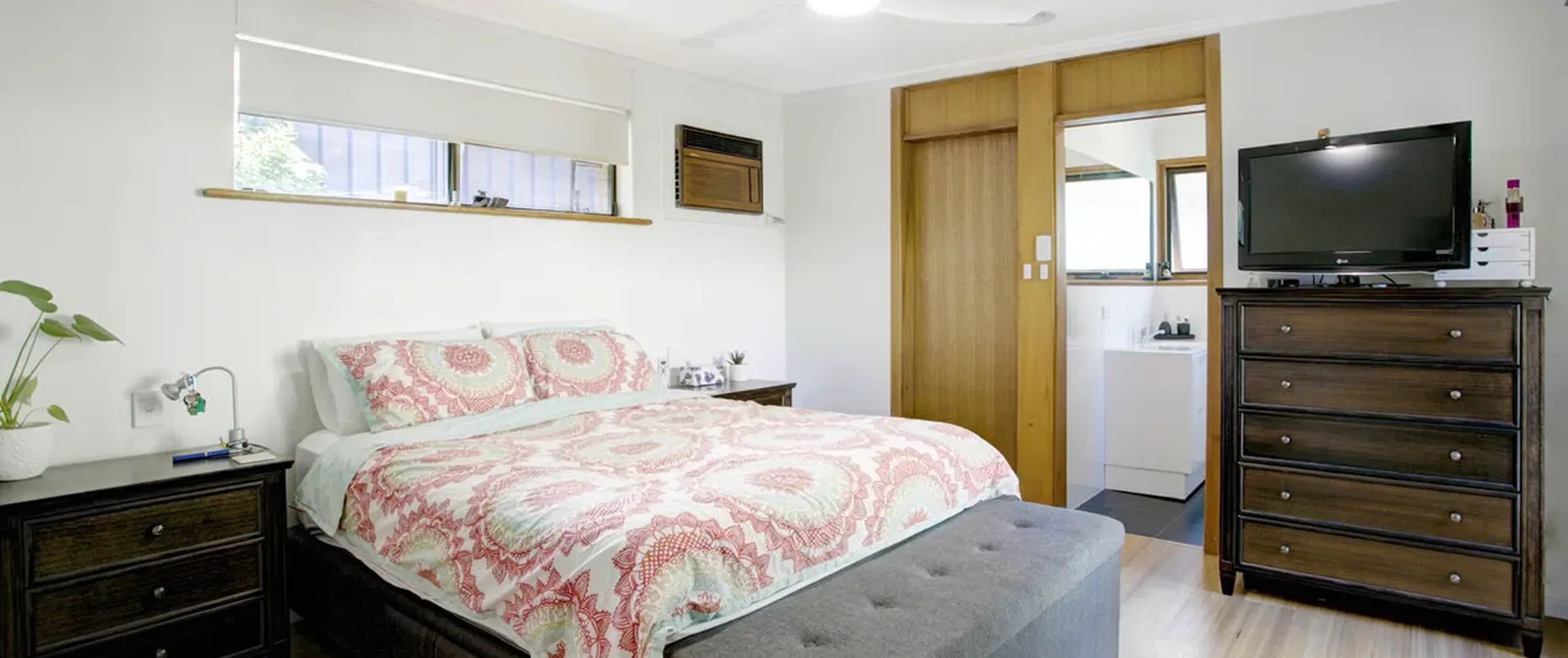 - Master bedroom with ceiling fan, air conditioner, walk in robe and updated ensuite