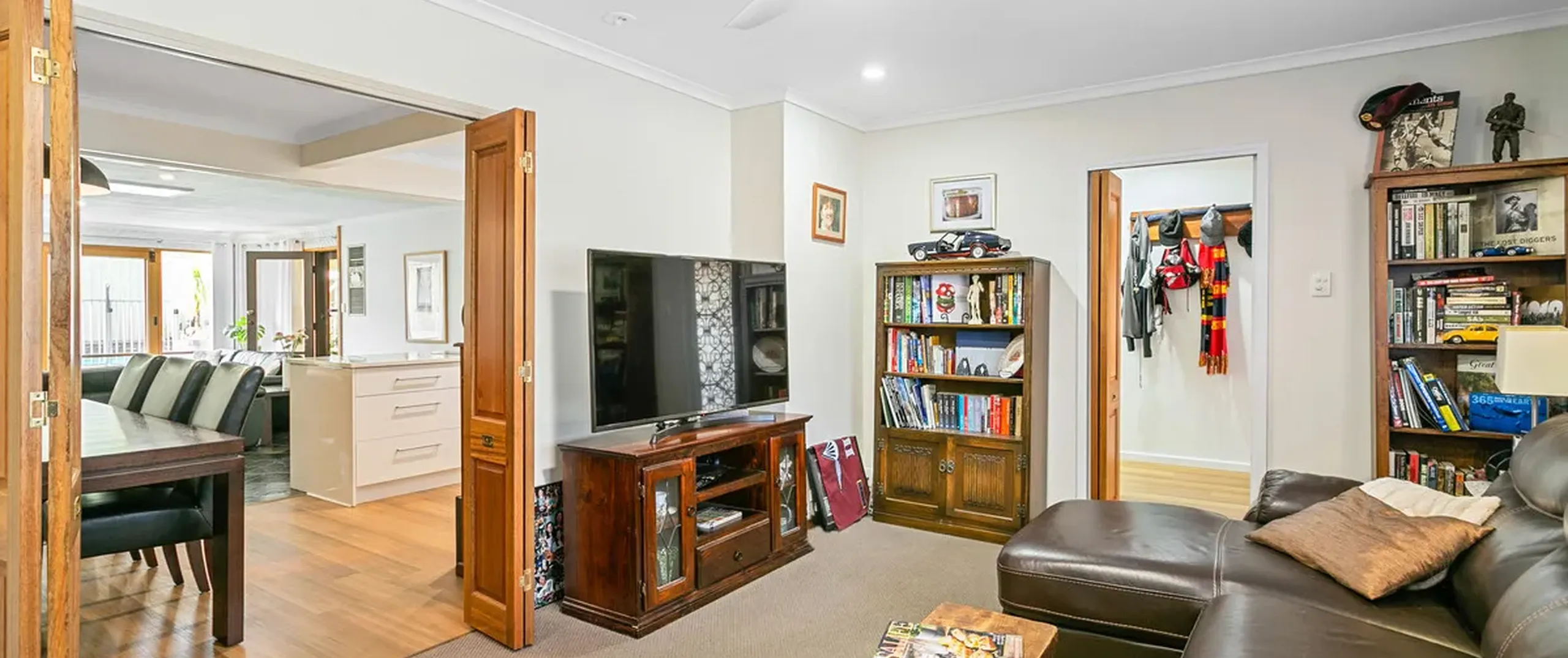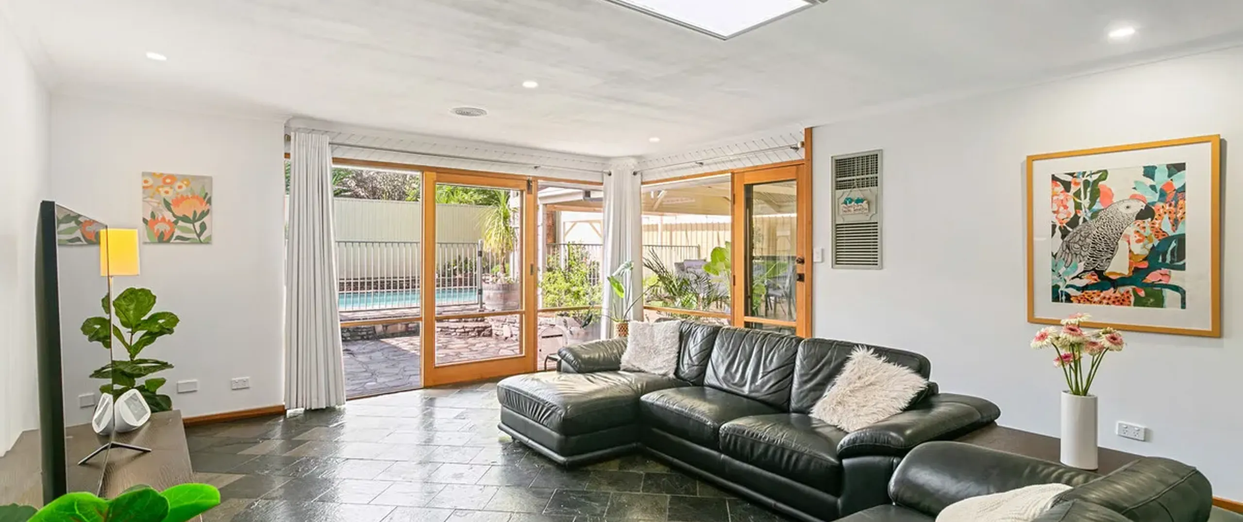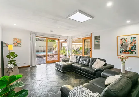 - Spacious light filled, tiled family room flowing smoothly to the outdoor entertaining area