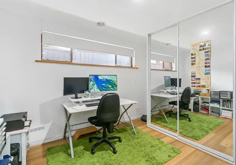 - Modern kitchen features induction cooktop, SMEG double oven, dishwasher, quality stone benchtops and ample storage with adjacent meals area