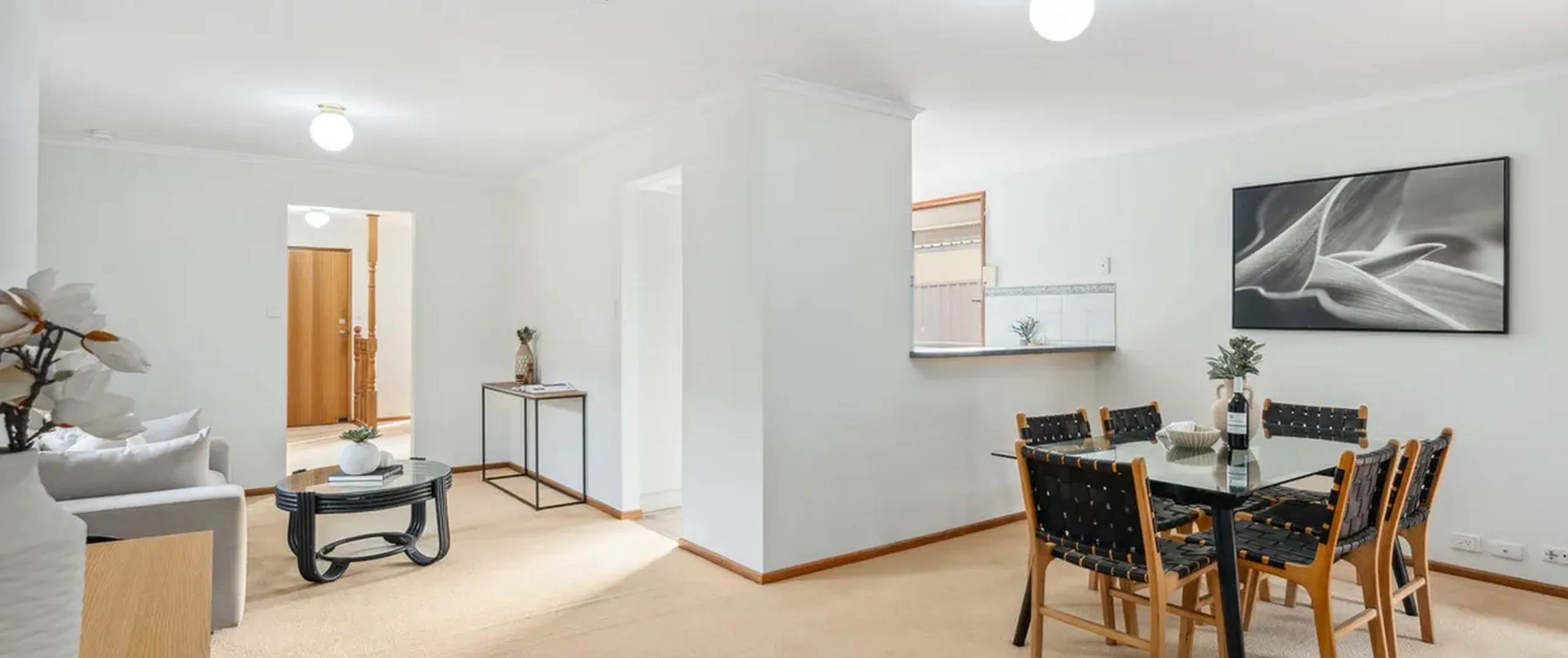 Upon entry, you're greeted by the warmth of the light-filled lounge room, beautifully illuminated by a charming bay window. Transitioning through to the open-plan kitchen and dining area, the timeless kitchen is both fully functional and aesthetically pleasing, featuring a gas cooktop and ample cupboard space.