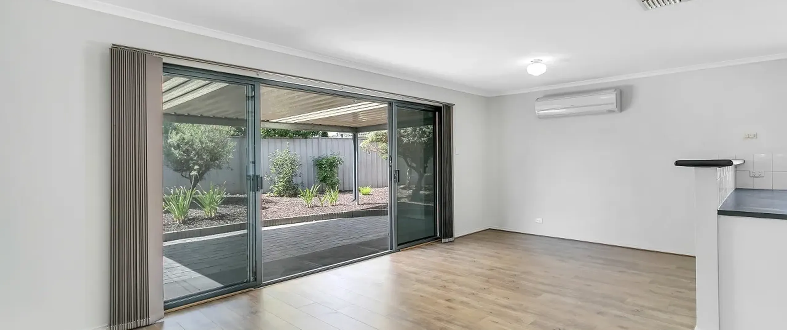 - Spacious, open plan living and dining with split system air-conditioner and double length sliding doors opening onto the outdoor entertaining area