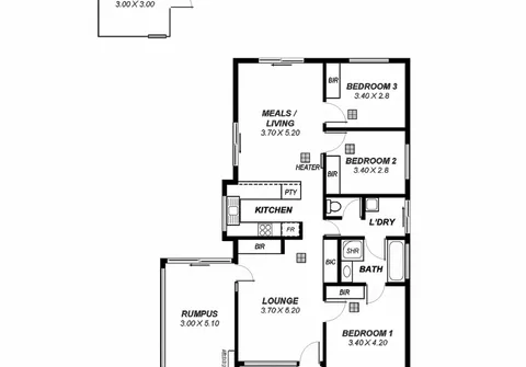 - Single garage with roller door converted to rumpus room with split system air conditioner