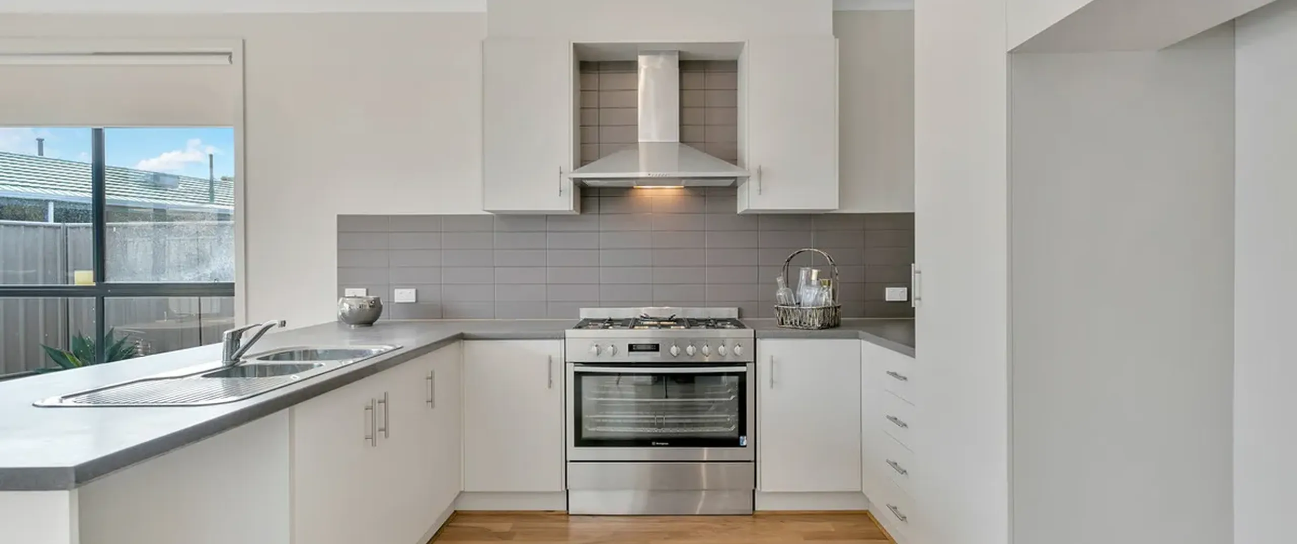 - Modern kitchen with breakfast bar, stainless steel appliances and ample cupboard and bench space