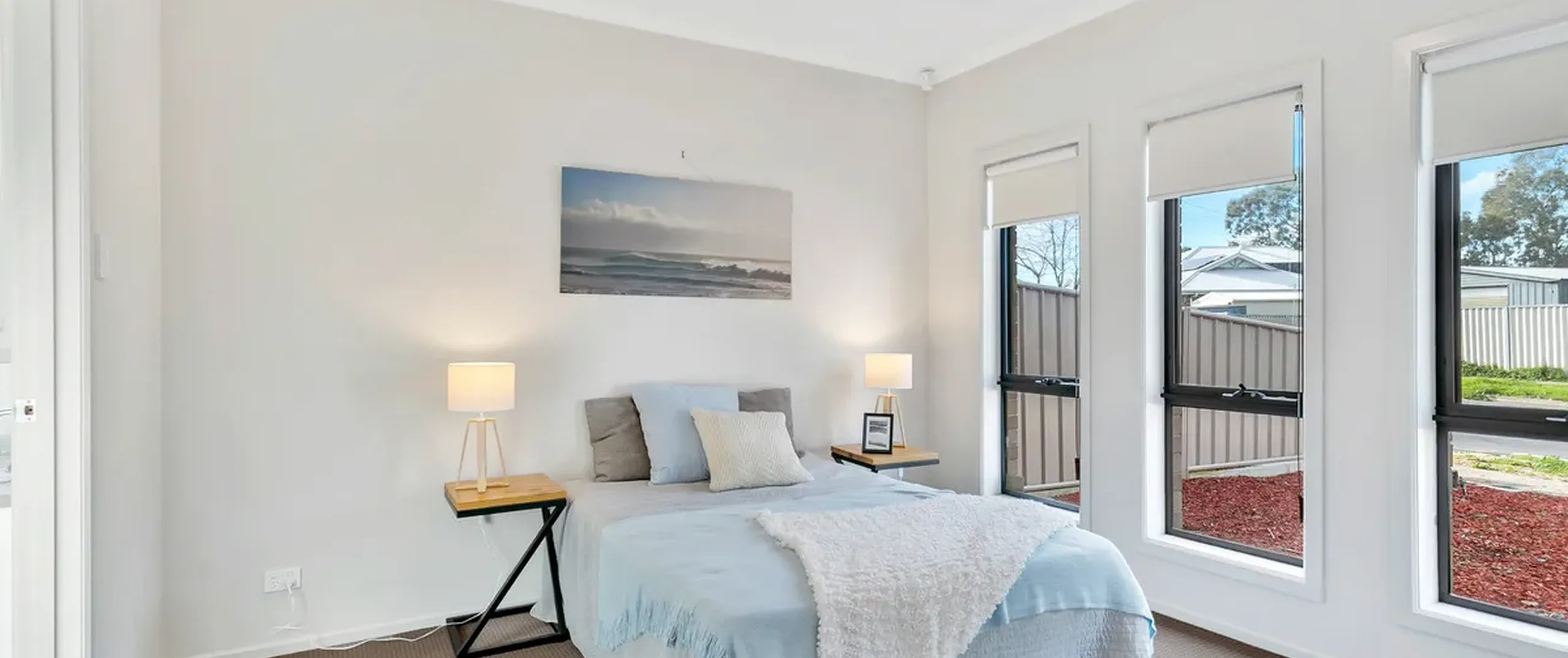 - Fully fenced, low maintenance yard with rain water tank and side walk-through access