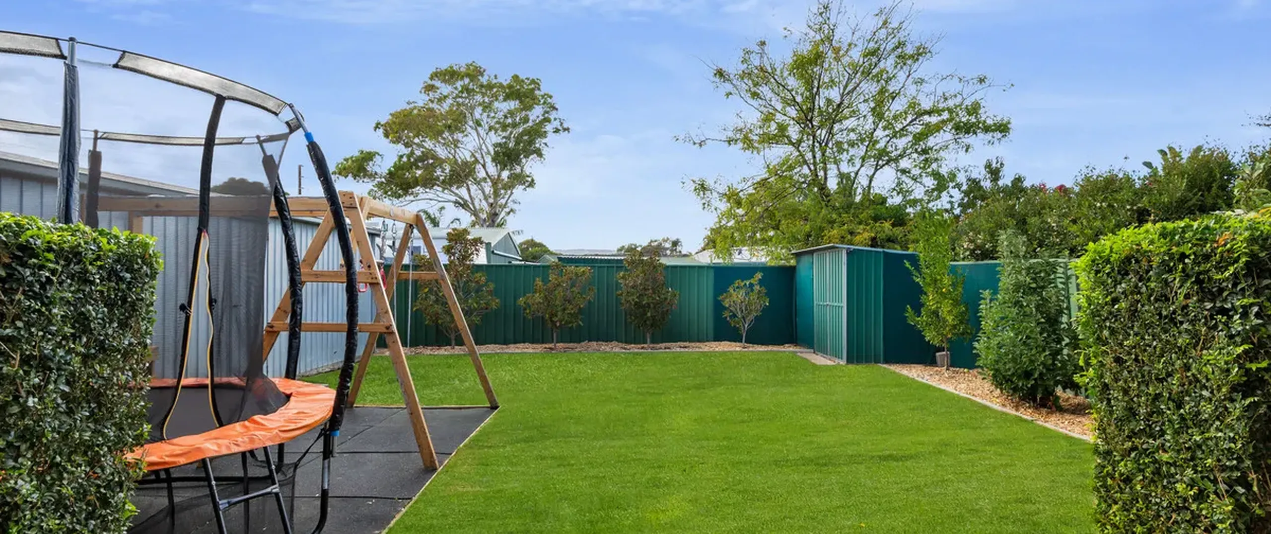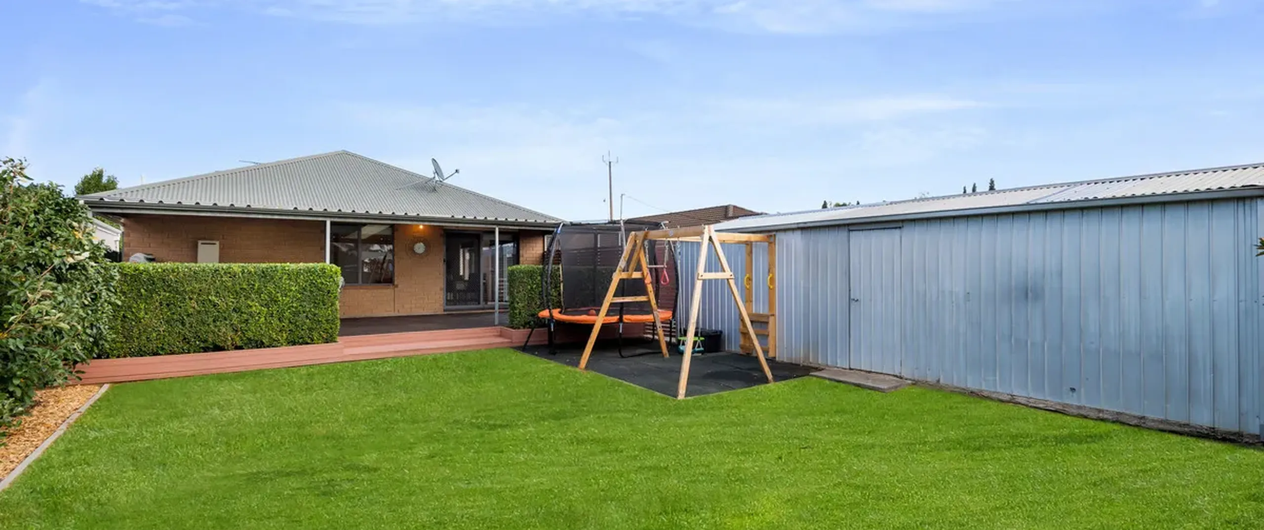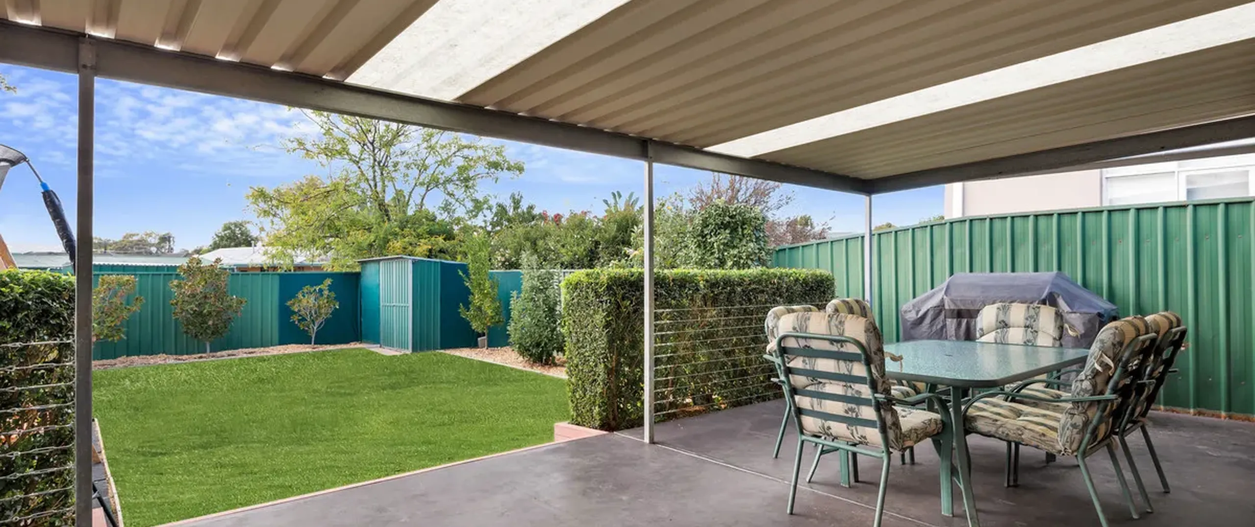 - Fully fenced, low maintenance yard with garden shed