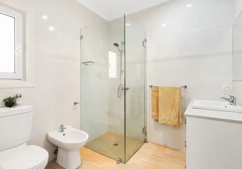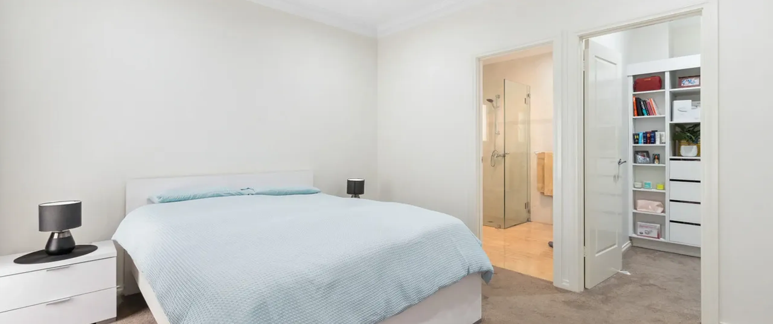 - Master bedroom with walk-in robe and ensuite, featuring floor to ceiling tiling