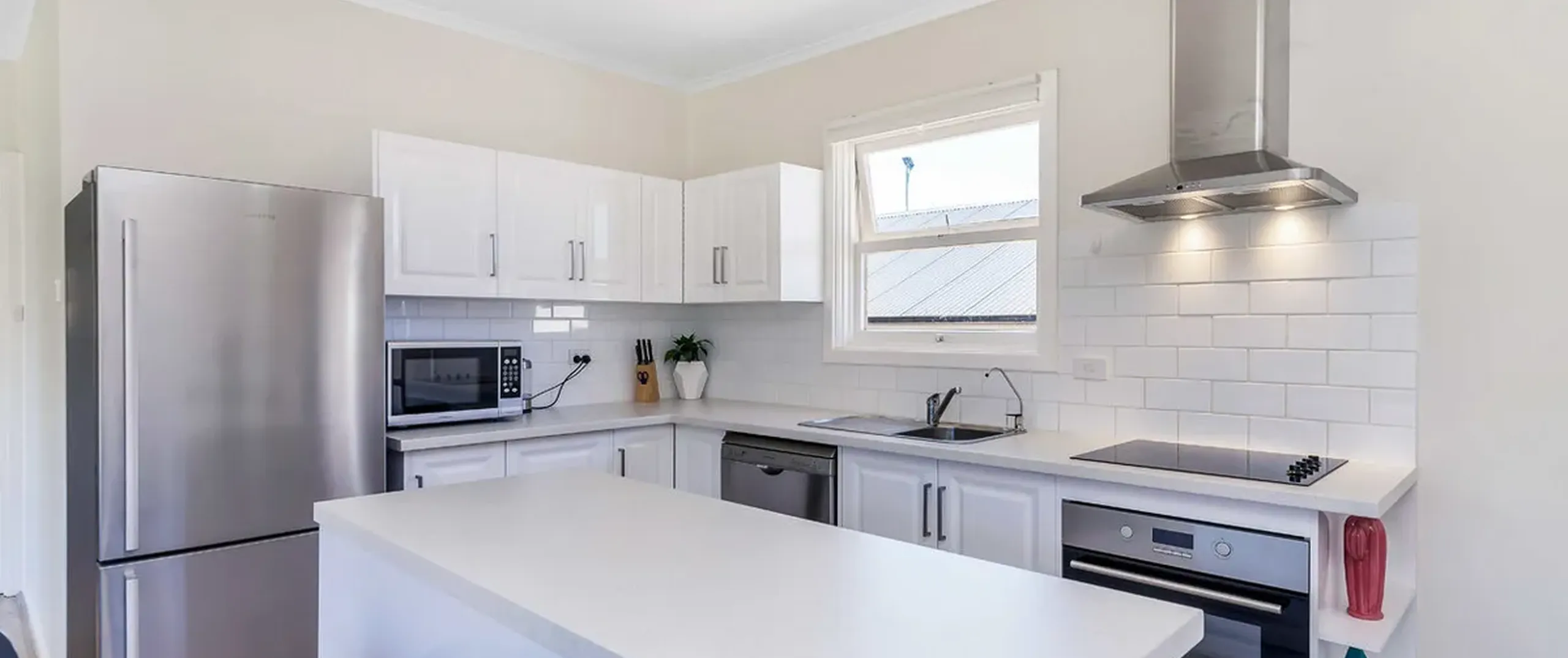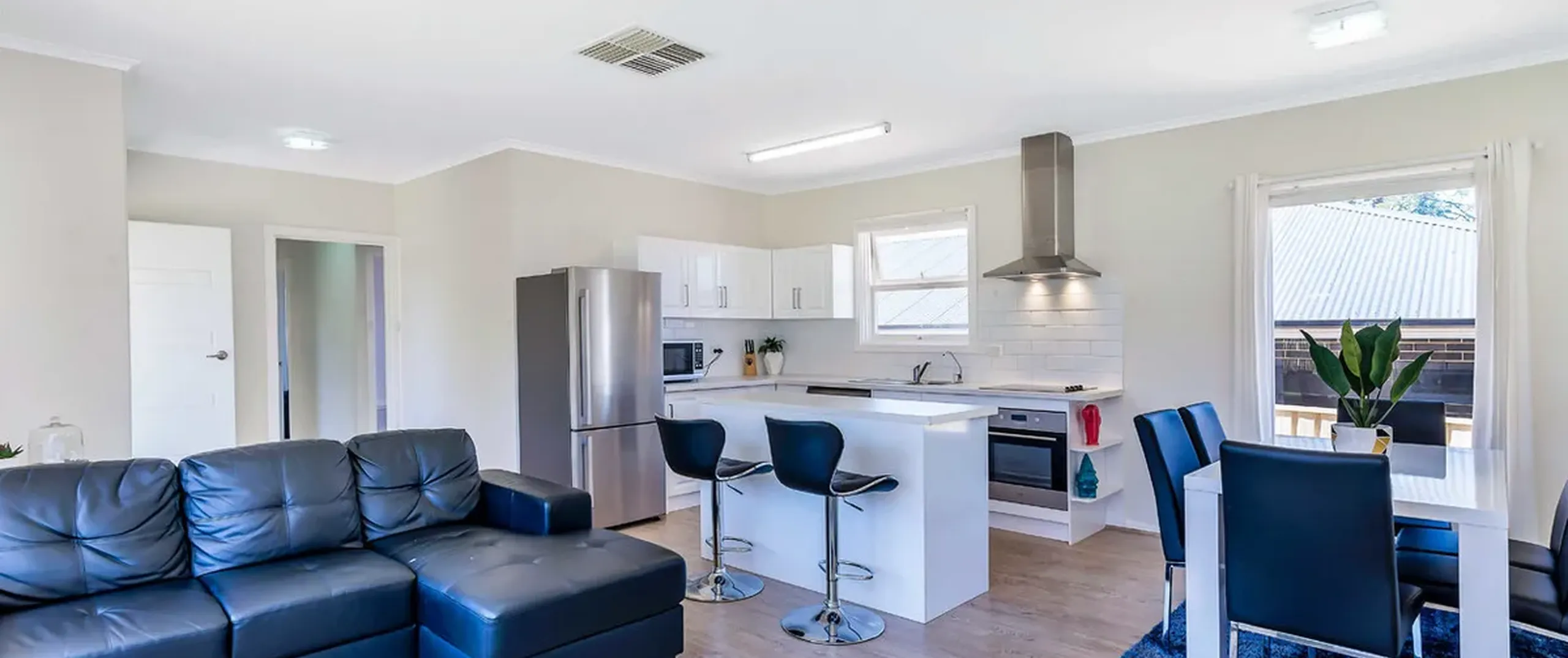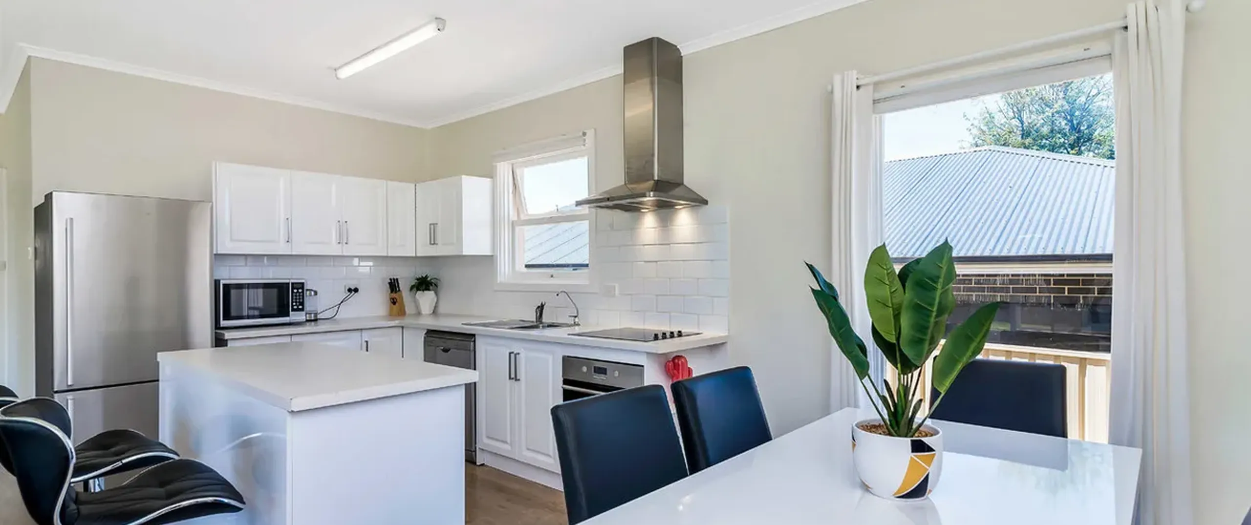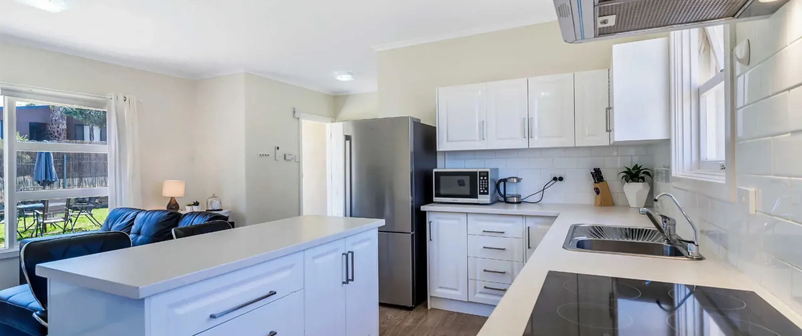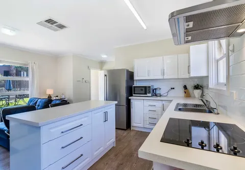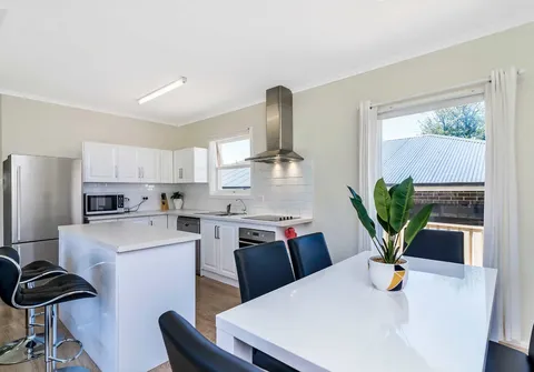 - Modern, stylish kitchen with stainless steel appliances, dishwasher, ample bench and cupboard space and island bench with breakfast bar