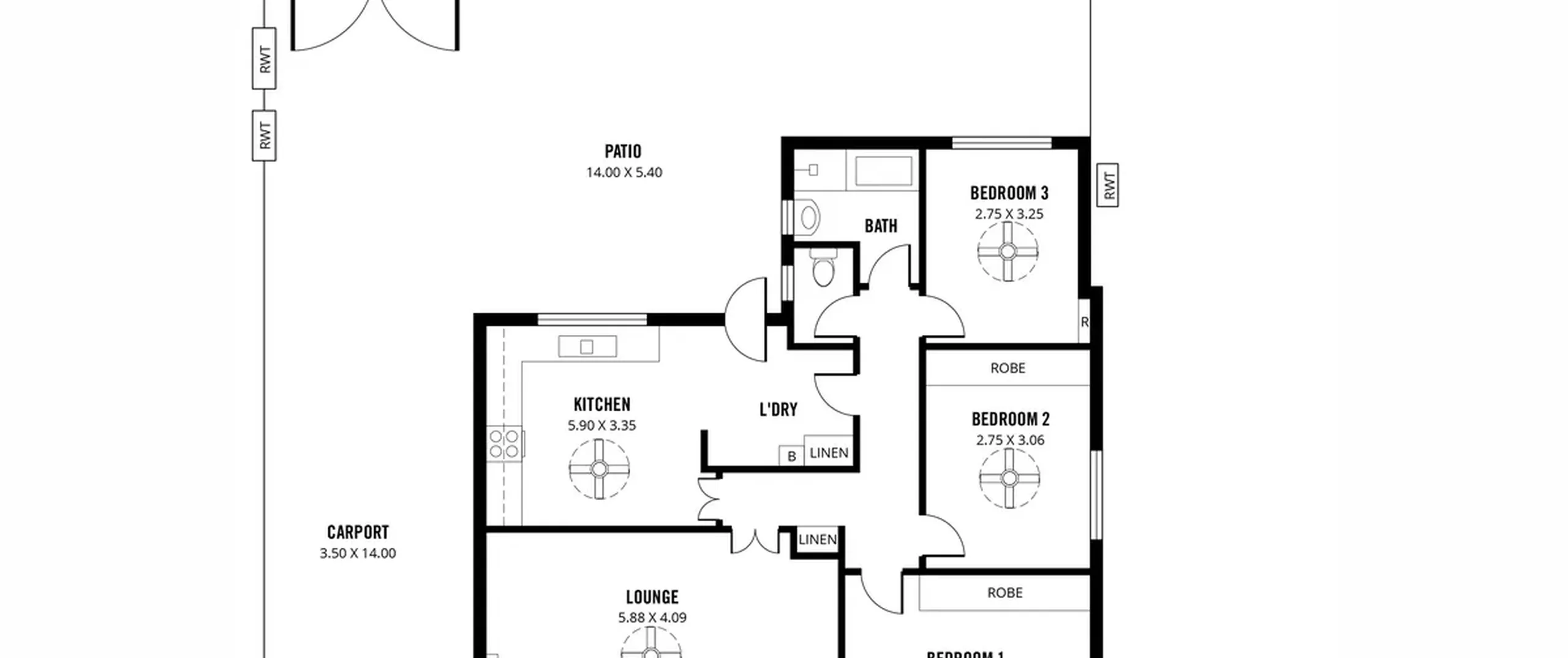 - Good sized bedroom 2 and 3, both with built-in robes and ceiling fan
