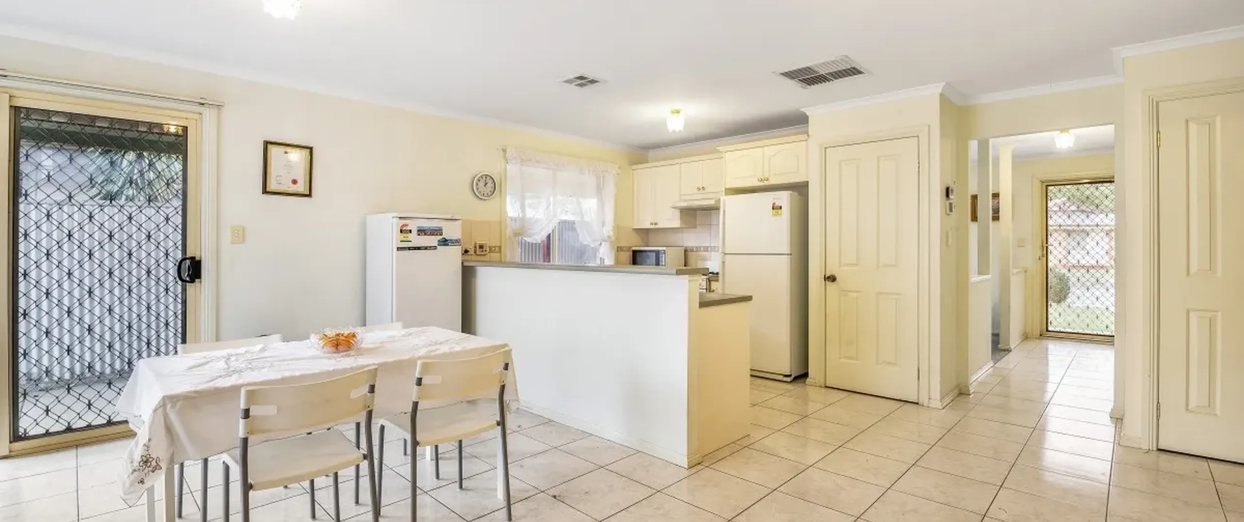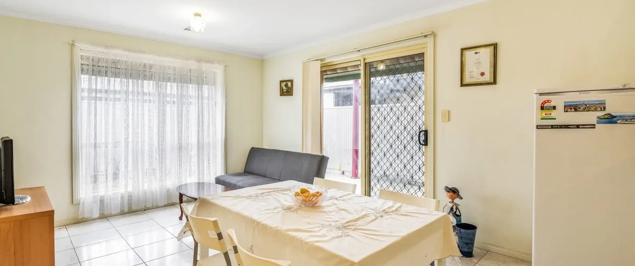 - Large family/dining room adjacent kitchen with sliding doors leading to the outdoor entertaining area