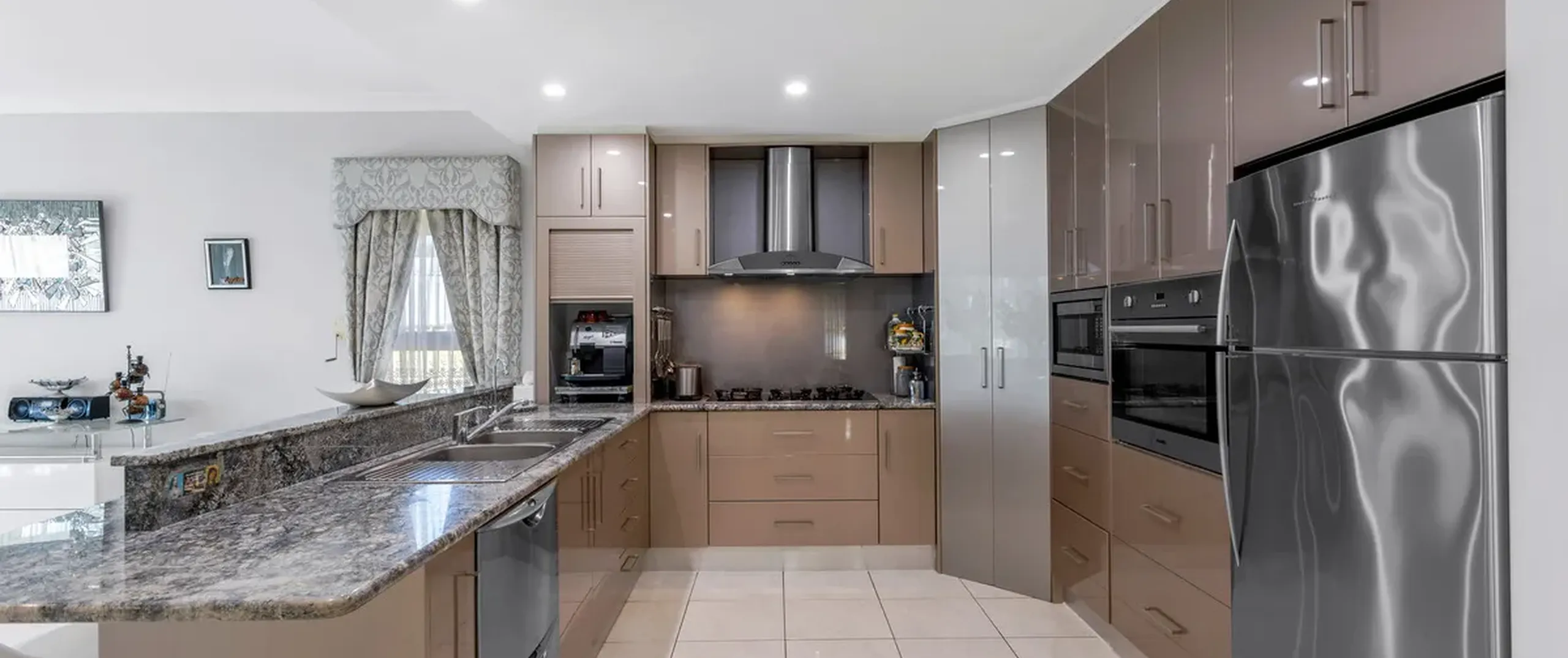 - Stylish kitchen with breakfast bar, stainless steel appliances and walk-in pantry