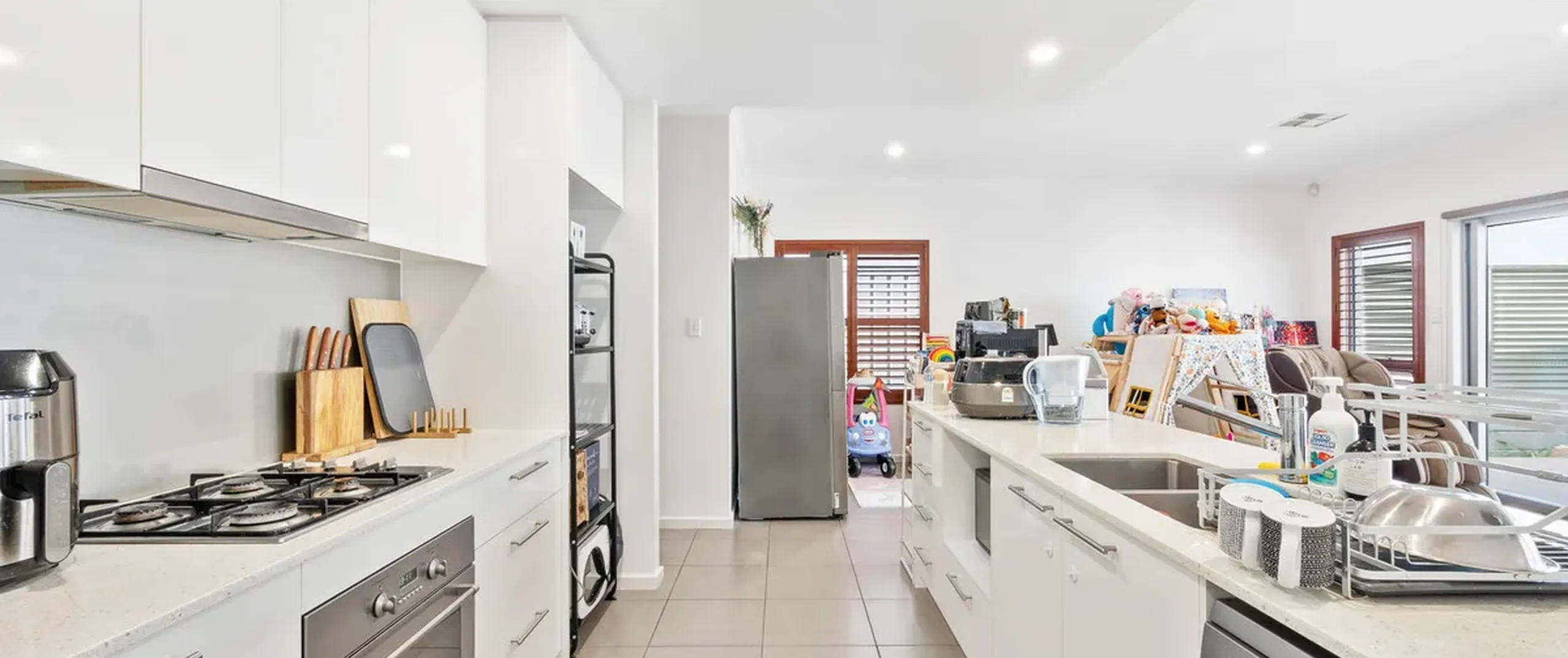 - Open plan living and dining with downlights throughout and sliding doors opening to the outdoor entertaining area