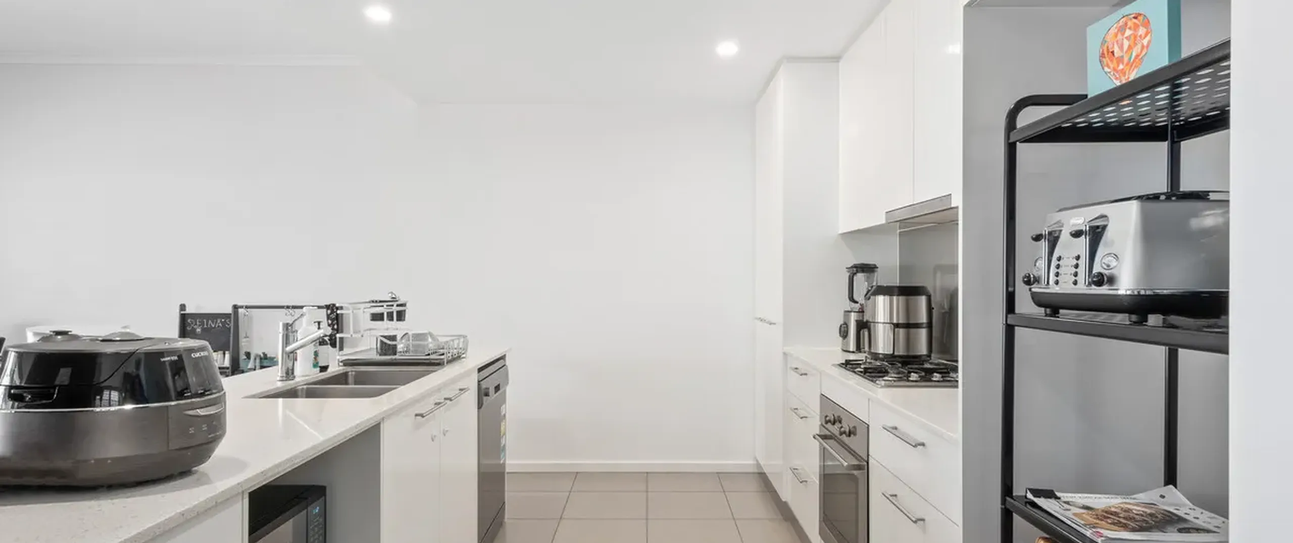 - Sleek kitchen featuring breakfast bar, quality stainless steel appliances and ample cupboard and bench space
