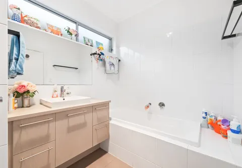 Daily life will centre around the inviting open-plan kitchen, living and dining area. The sleek kitchen is complete with a large centre island bench, quality appliances, ample storage, on-trend flooring and direct access to the outdoor entertaining area. Both guest bedrooms are generous with built-in robes and easy access to the main bathroom, while the master bedroom is perfectly nestled with a large walk-in robe and ensuite.