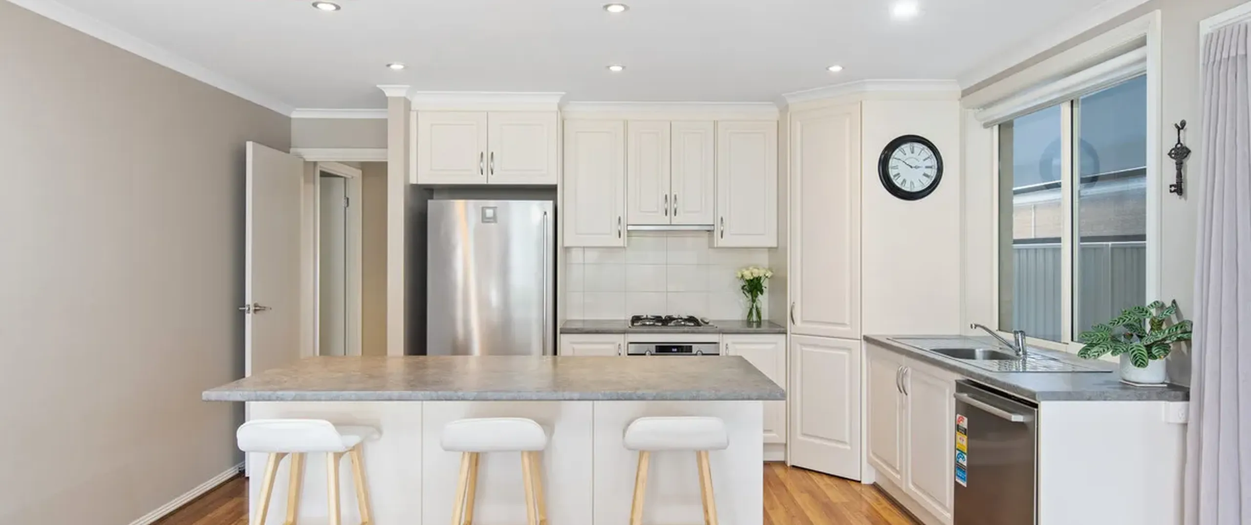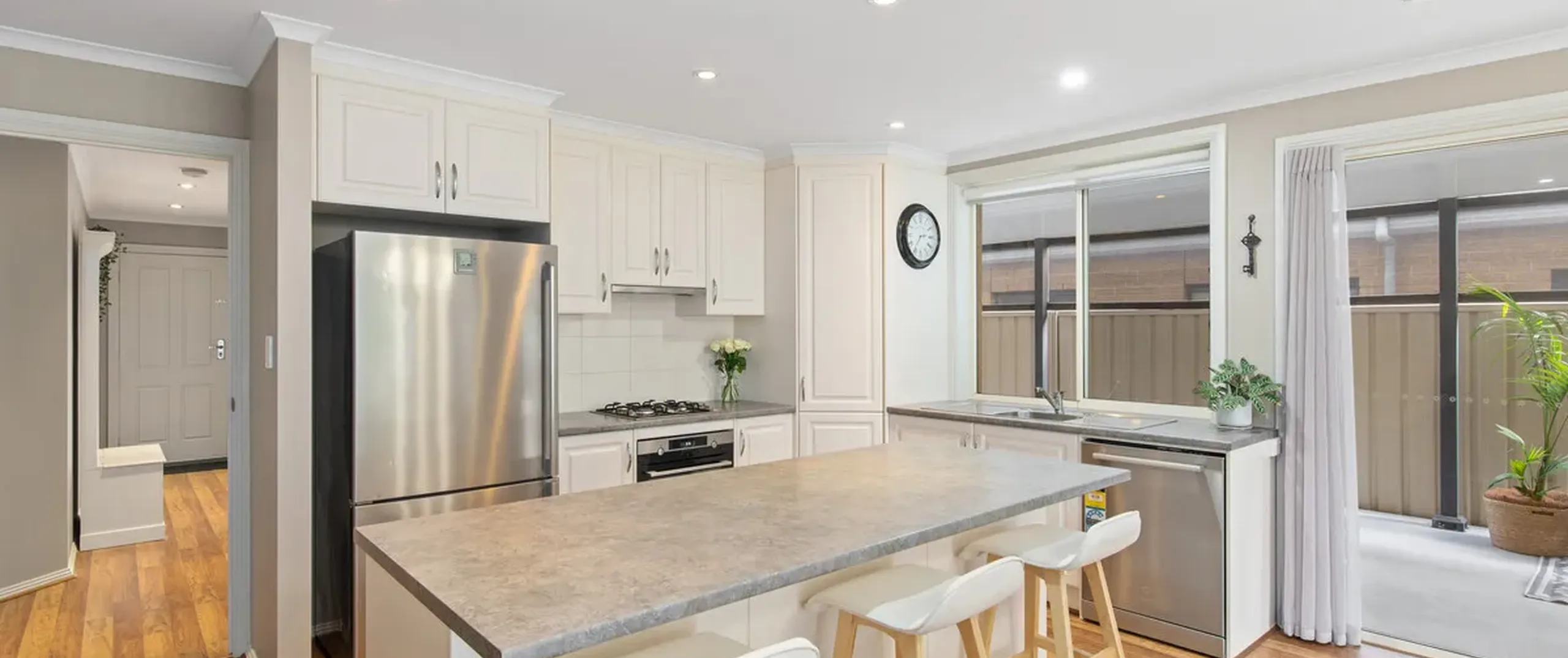 - Timeless kitchen with a suite of stainless-steel appliances including gas cook top, oven, and dishwasher, pantry, ample cupboard space and island breakfast bar