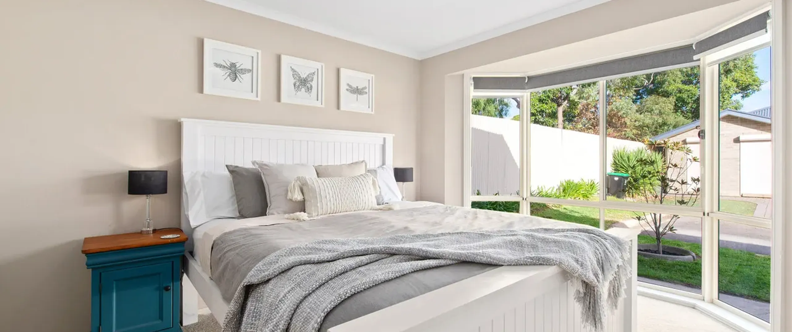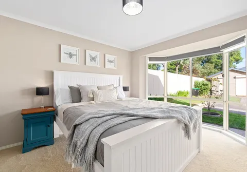 - Master bedroom complimented by a beautiful bay window, complete with walk-in robe and glistening white ensuite
