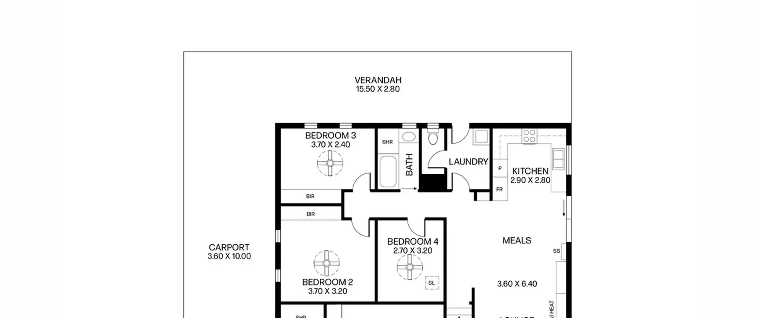 - Good sized bedrooms 2, 3 and 4, all with ceiling fans, bedrooms 2 and 3 with built-in robes and bedroom 4 with skylight