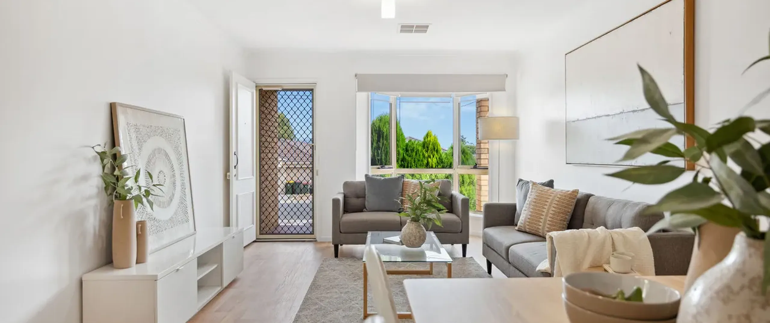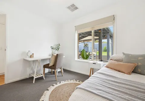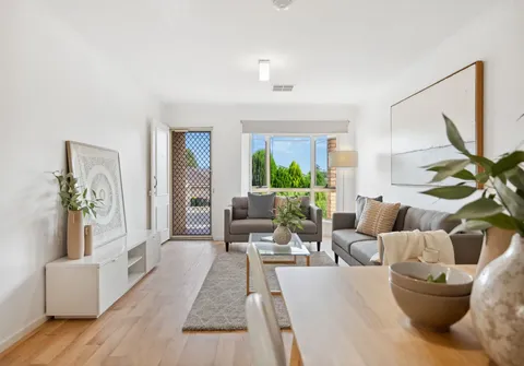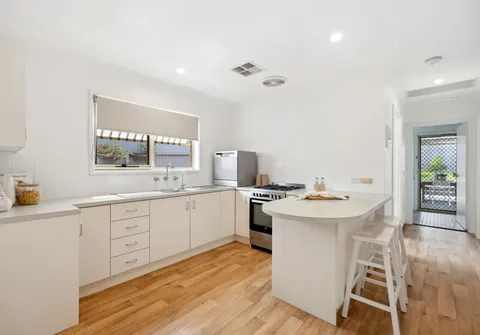 Nestled perfectly on the high side of a peaceful street, this low-maintenance home, built in 1995, presents an attractive opportunity for first-time buyers entering the market, downsizers or savvy investors seeking an appealing investment opportunity. Situated on a manageable 308sqm (approximate) allotment, the residence features two spacious bedrooms, an open-plan living and dining area, and a central kitchen. The interior is complemented by on-trend timber-look flooring and crisp neutral tones, creating a delightful ambiance throughout each corner of the home.