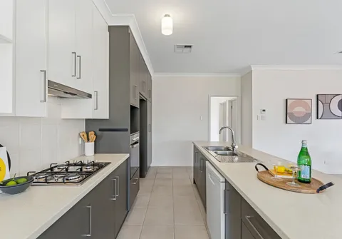 Freshly painted throughout plus 2.7m high ceilings and an abundance of natural light streaming through large windows, the home embraces a calming palette enhanced by stylish finishes throughout. At its centre, a spacious open-plan kitchen, living and dining area creates the ideal setting for both entertaining and relaxed family living. The kitchen combines functionality with elegance, offering generous storage, stainless steel appliances and premium contemporary finishes perfectly suited to modern lifestyles.