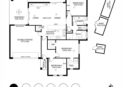 Entertain outdoors beneath the timber clad alfresco with built in speakers and gas provision, overlooking a private low maintenance yard. A garage with tiled flooring, attic storage, and multiple sheds add further functionality to this impressive property.