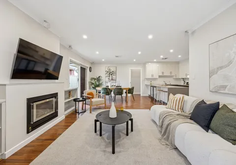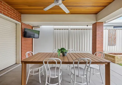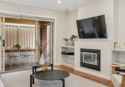 Perfectly positioned on a corner allotment, this contemporary residence blends modern comfort with elegant finishes. The expansive main living area is warmed by a gas fireplace, complemented by ducted reverse cycle air conditioning and LED downlights for year round comfort.
