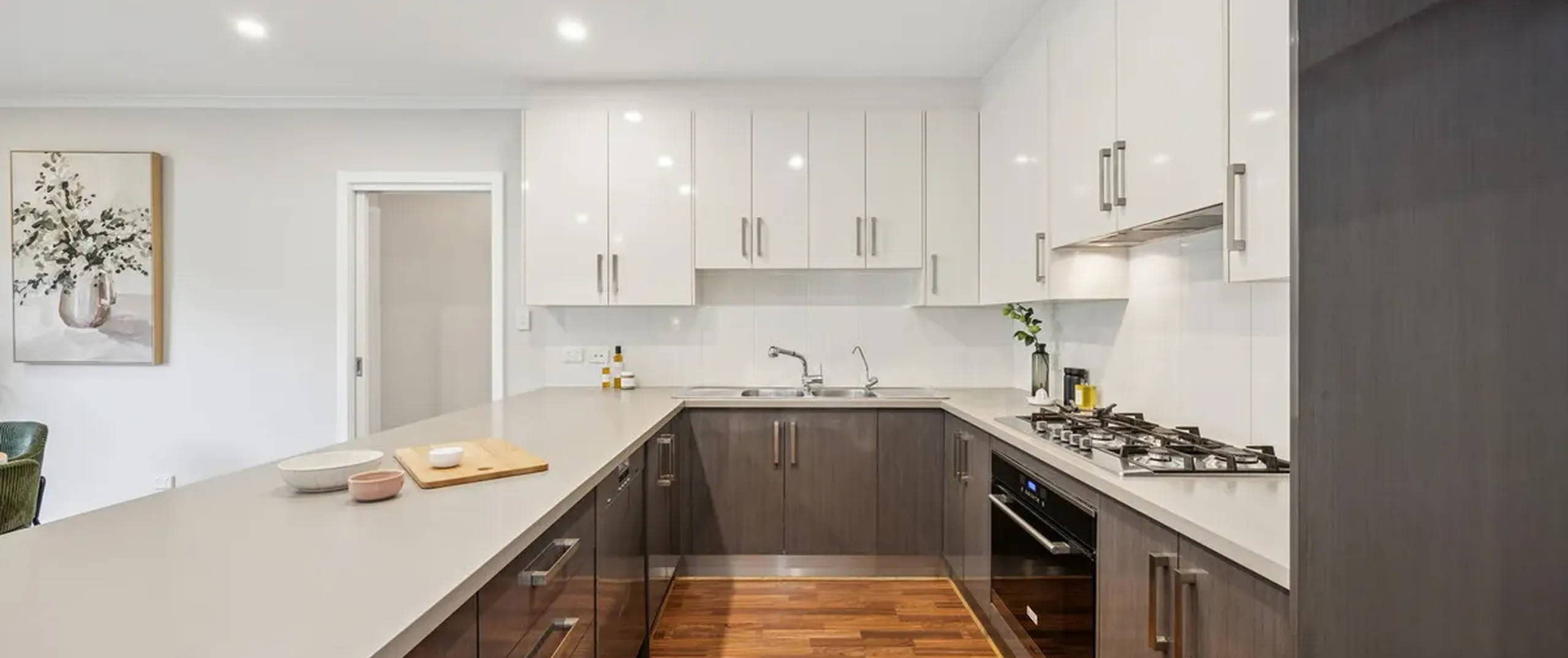 - Premium kitchen with 900mm cooktop and oversized benchtop and generous storage
