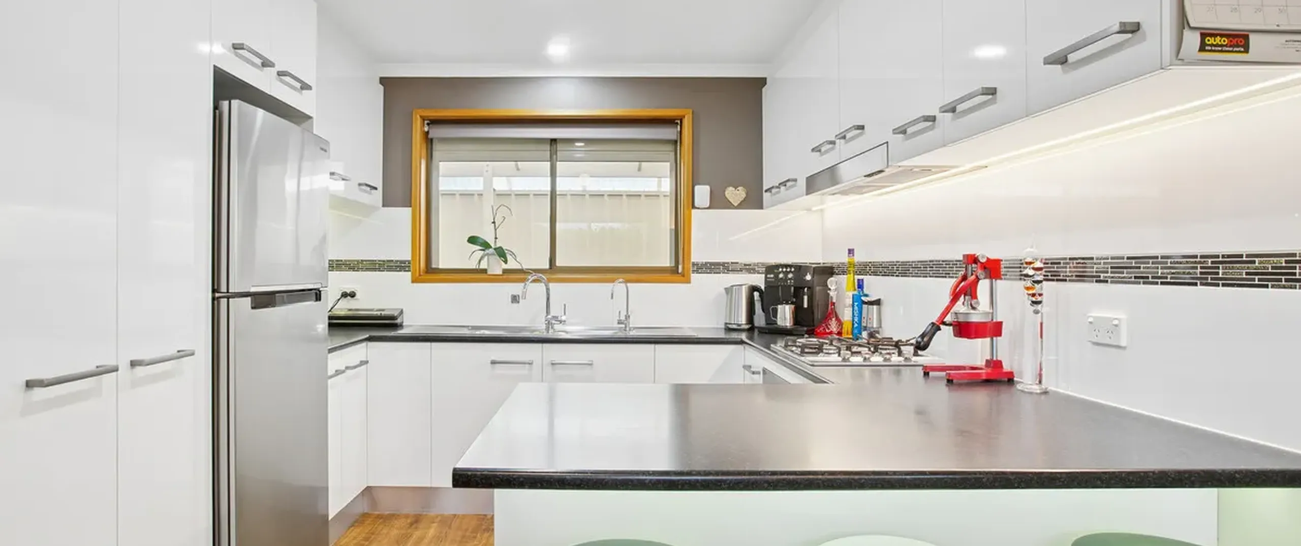 - Renovated kitchen complete with breakfast bar, gas cooktop, electric oven, under bench ambient lighting and ample storage