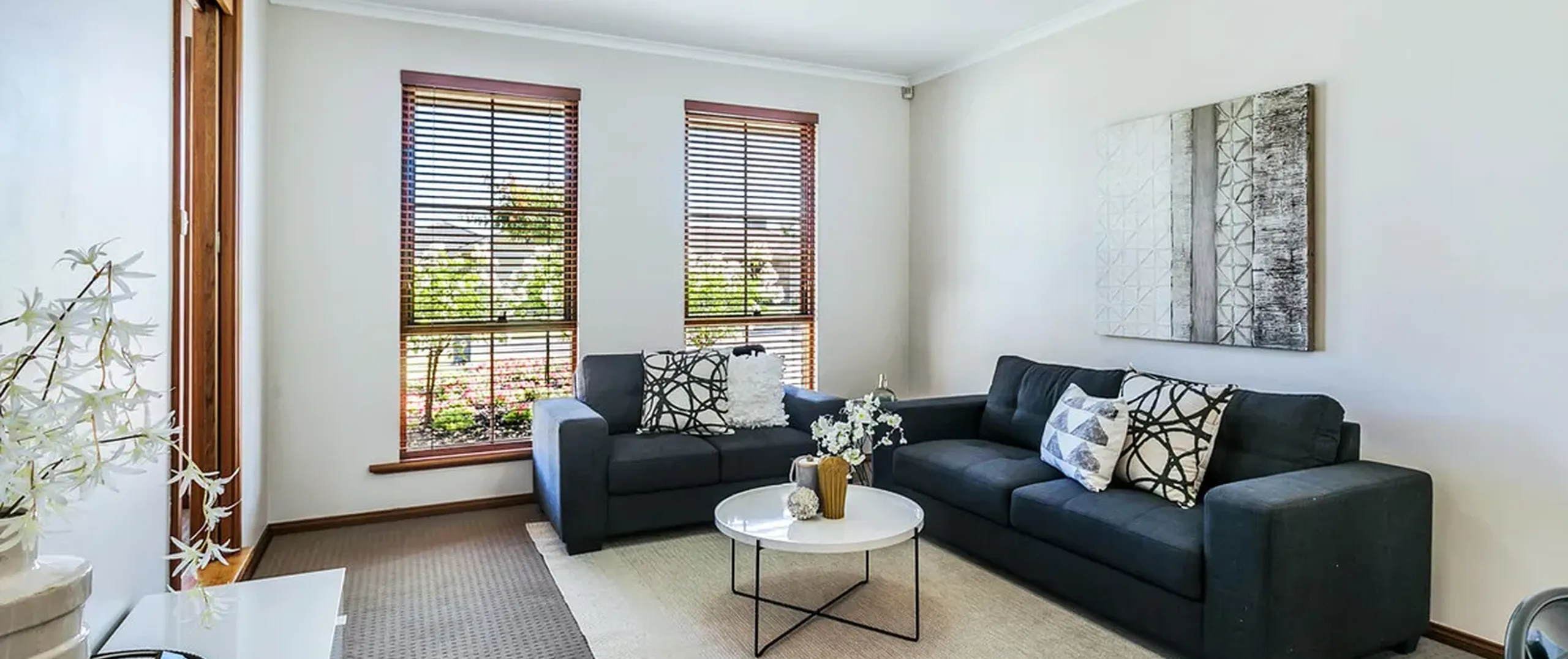 - Neutral décor throughout