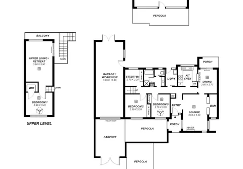 - Single carport and double length drive through garage / workshop with roller door and access to rear yard
