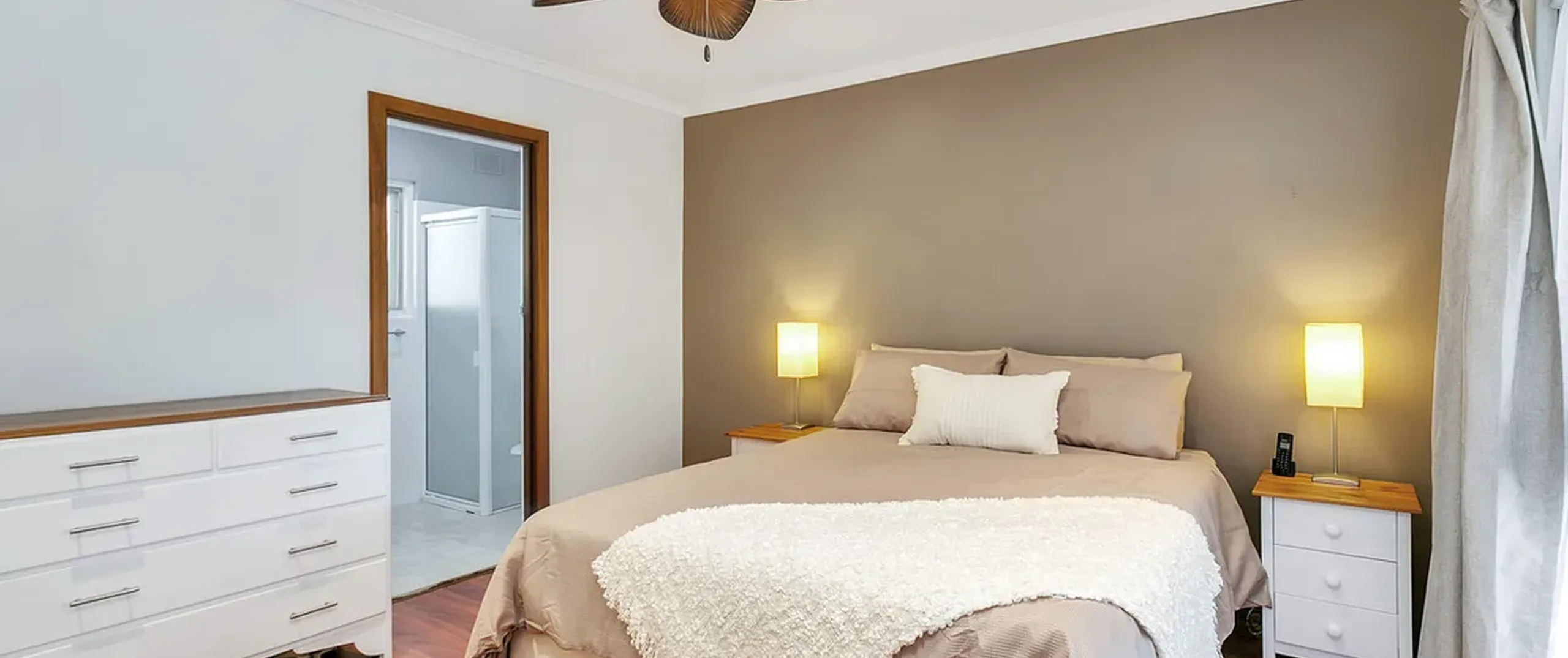 - Master bedroom with ceiling fan, built-in robe and ensuite