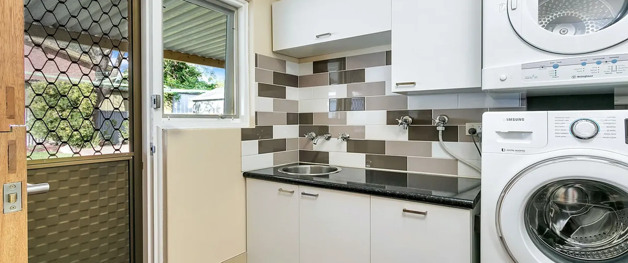 - Separate laundry with ample storage space