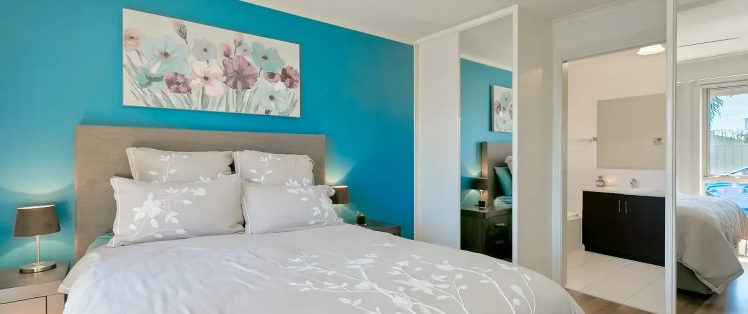 - Master bedroom with built-in robes, ceiling fan and direct access to main bathroom