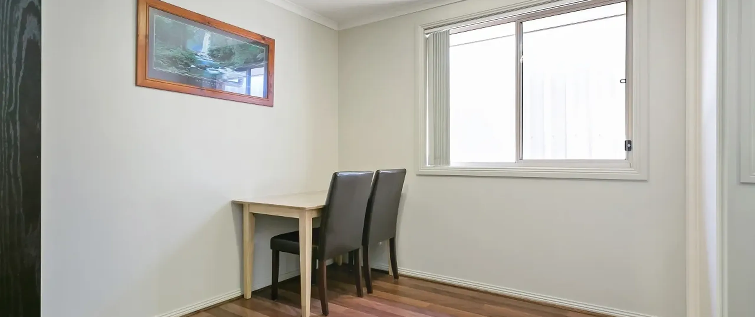 - Light filled living and dining room with split system air conditioner