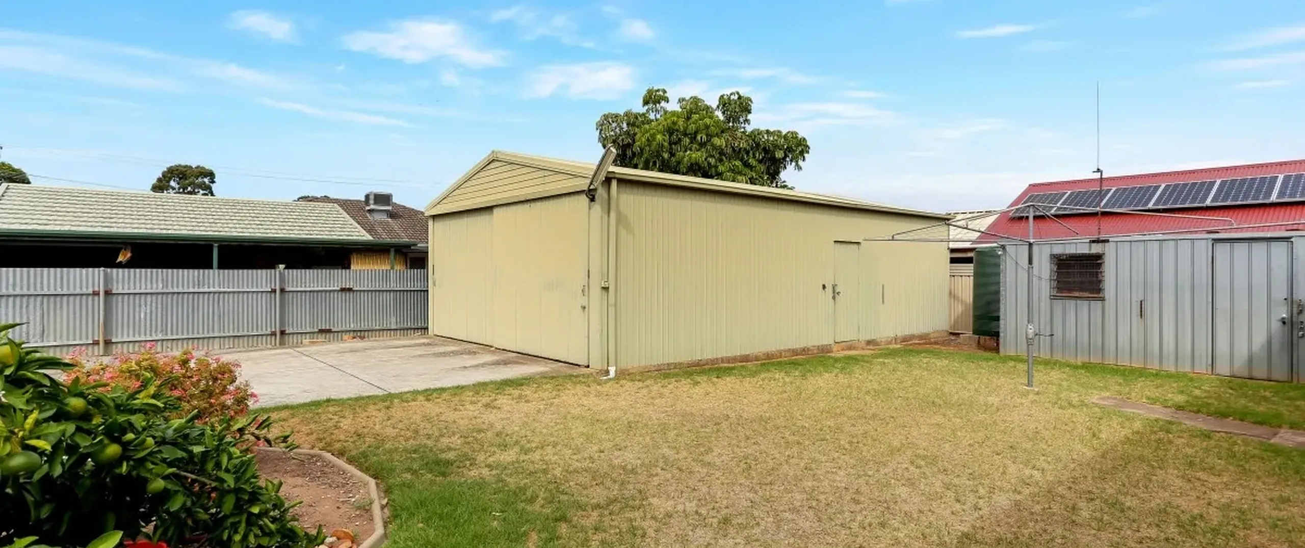 - Large rear yard with garden shed