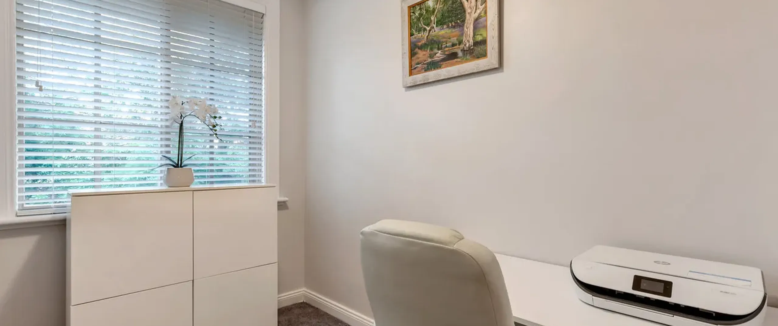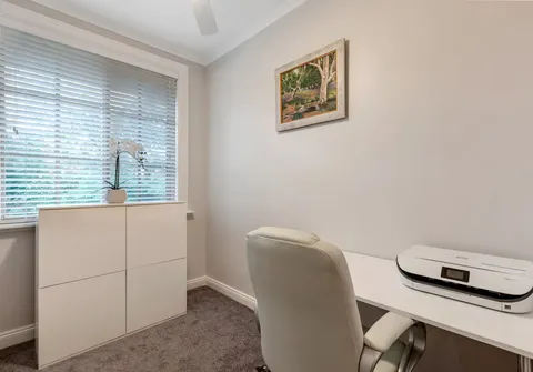 - Large bedroom 2 with built-in robe, ceiling fan, wall heater and separate study with ceiling fan