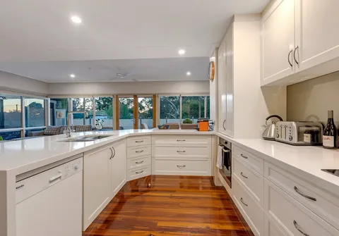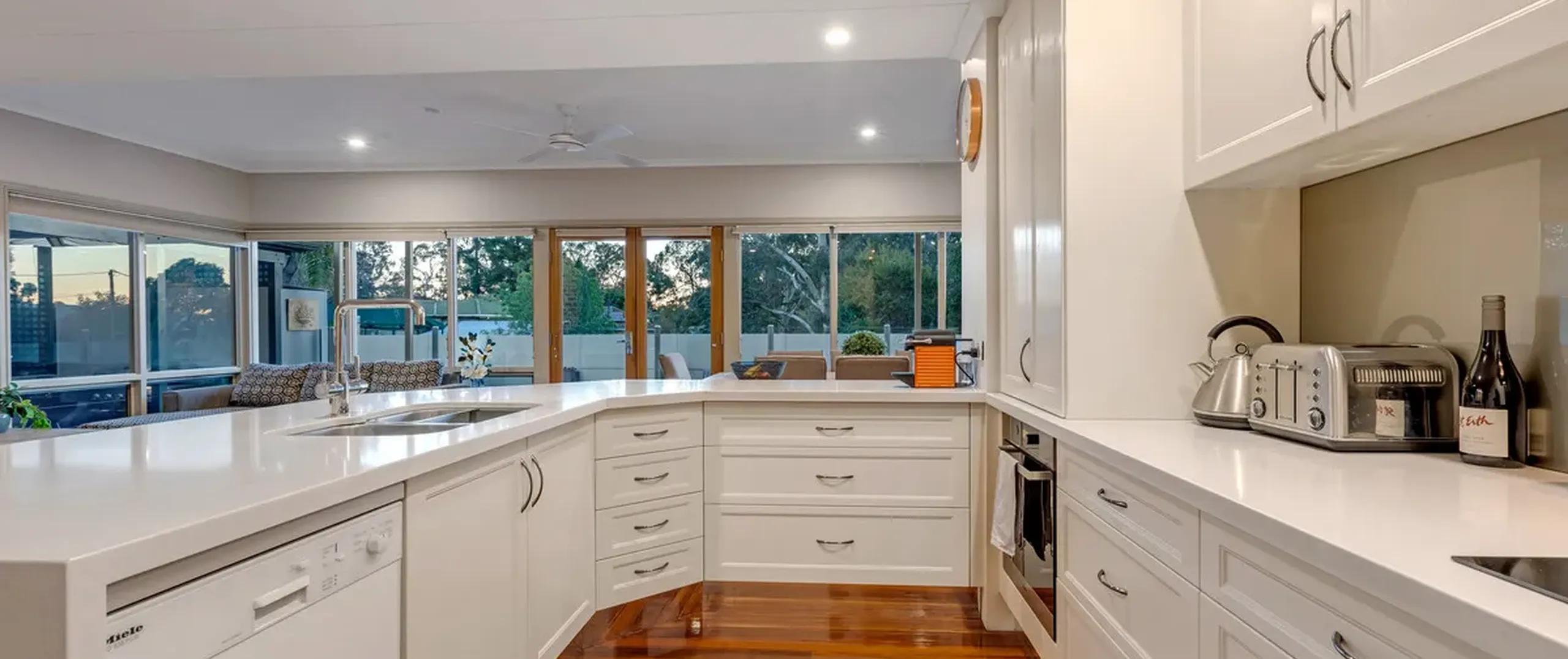 - High quality kitchen with stone bench tops, pigeon pair integrated Electrolux fridge and freezer, induction cooktop, Miele appliances including dishwasher, oven and rangehood, 3 in 1 mixer tap, breakfast bar and ample bench and cupboard space