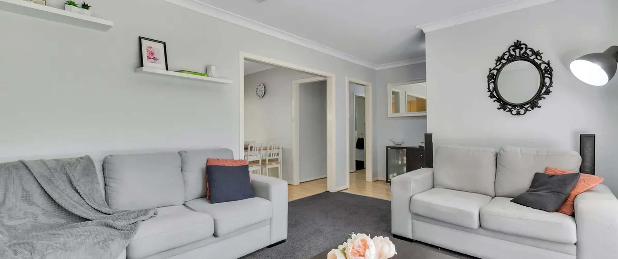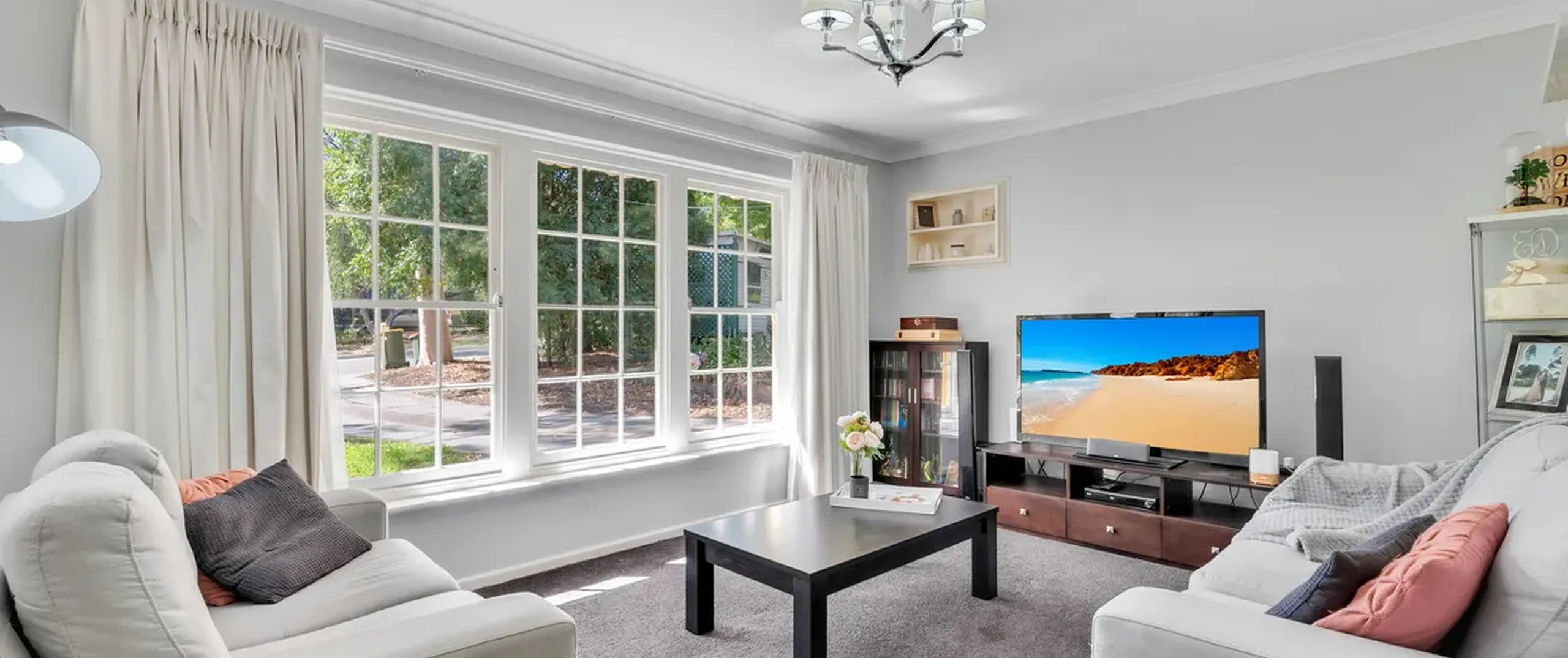 - Separate light filled lounge with gorgeous ceiling rose