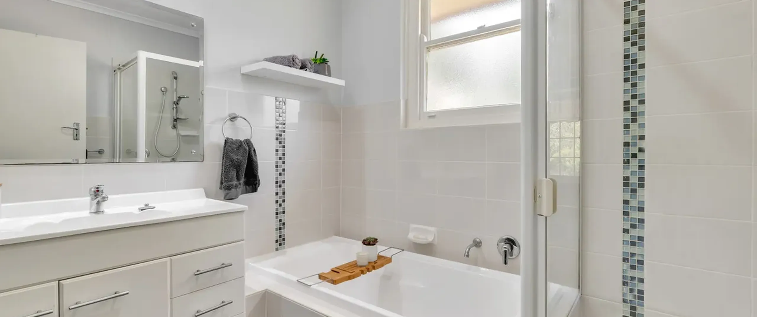 - Neat and tidy bathroom with separate bath and shower + separate toilet
