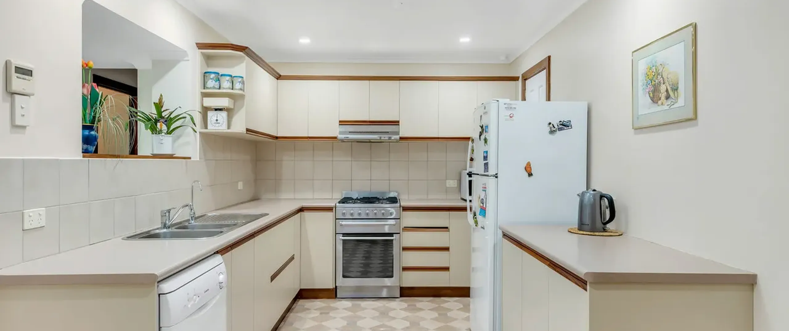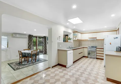 - Kitchen with gas cooktop, fan forced oven, dishwasher, walk-in pantry, servery to dining room and ample bench and cupboard space