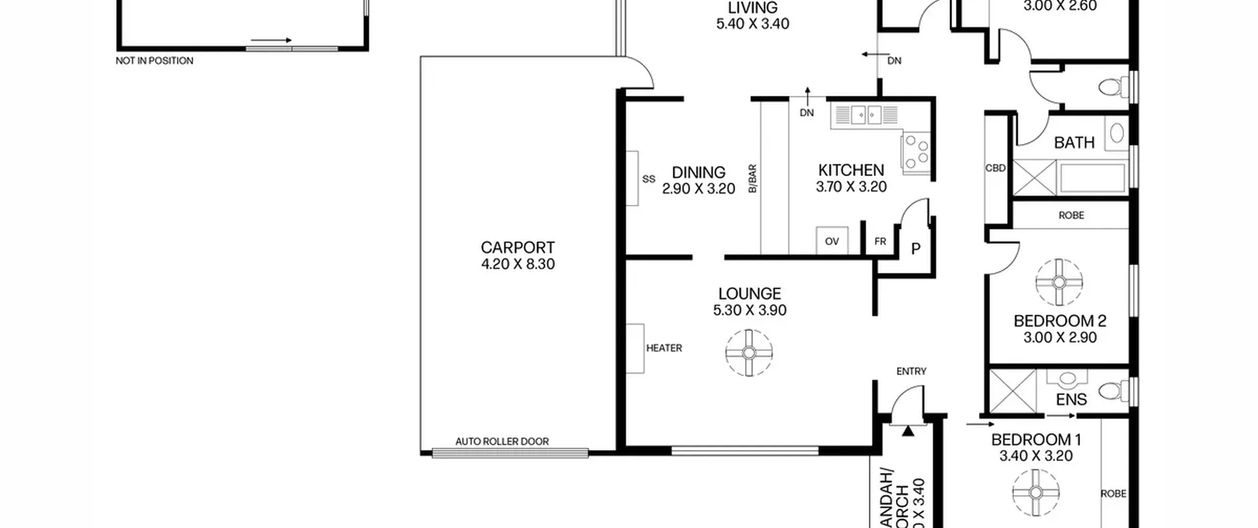 - Double length carport with automatic roller door