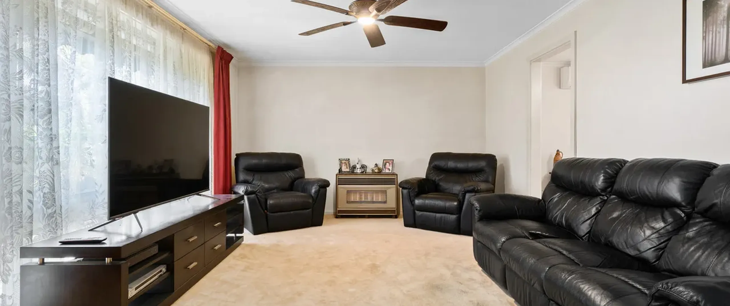 - Valuable separate lounge area with a ceiling fan and gas heater offering the perfect place to settle in for a movie night with the family