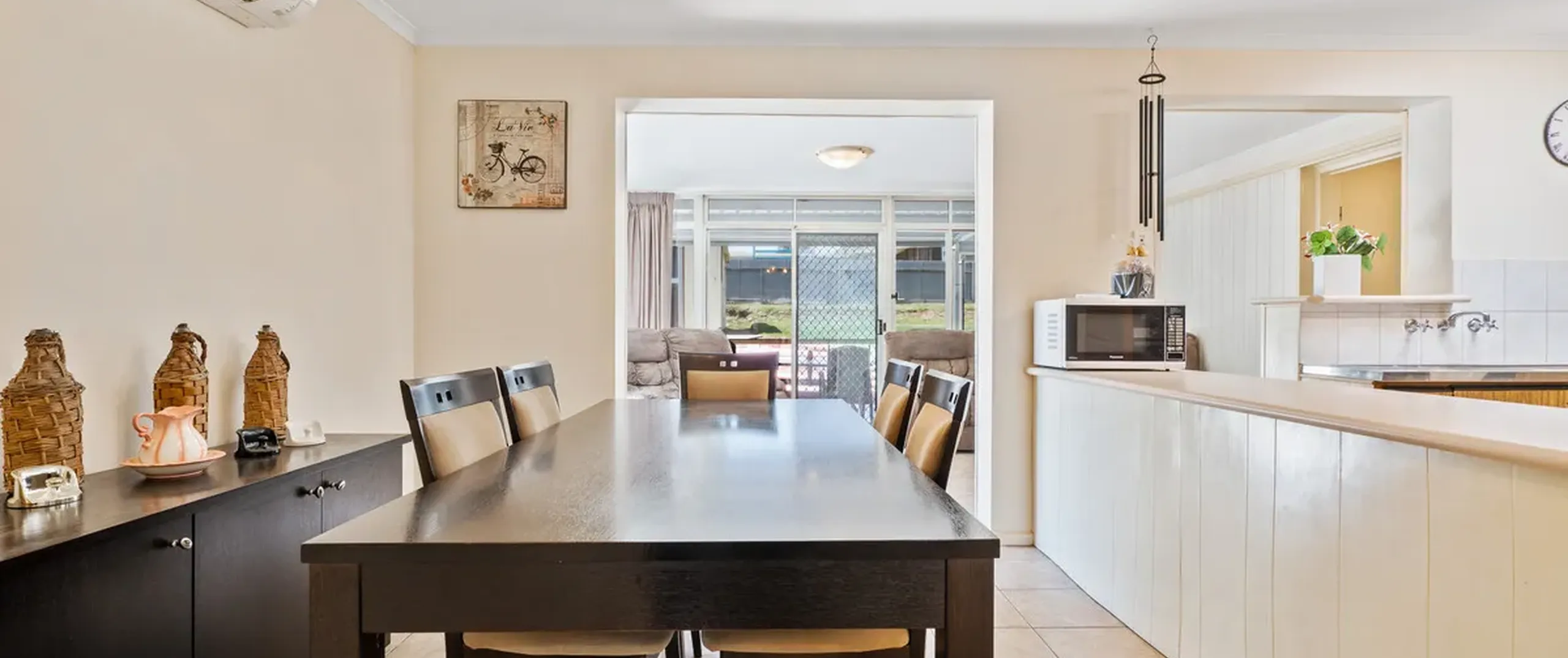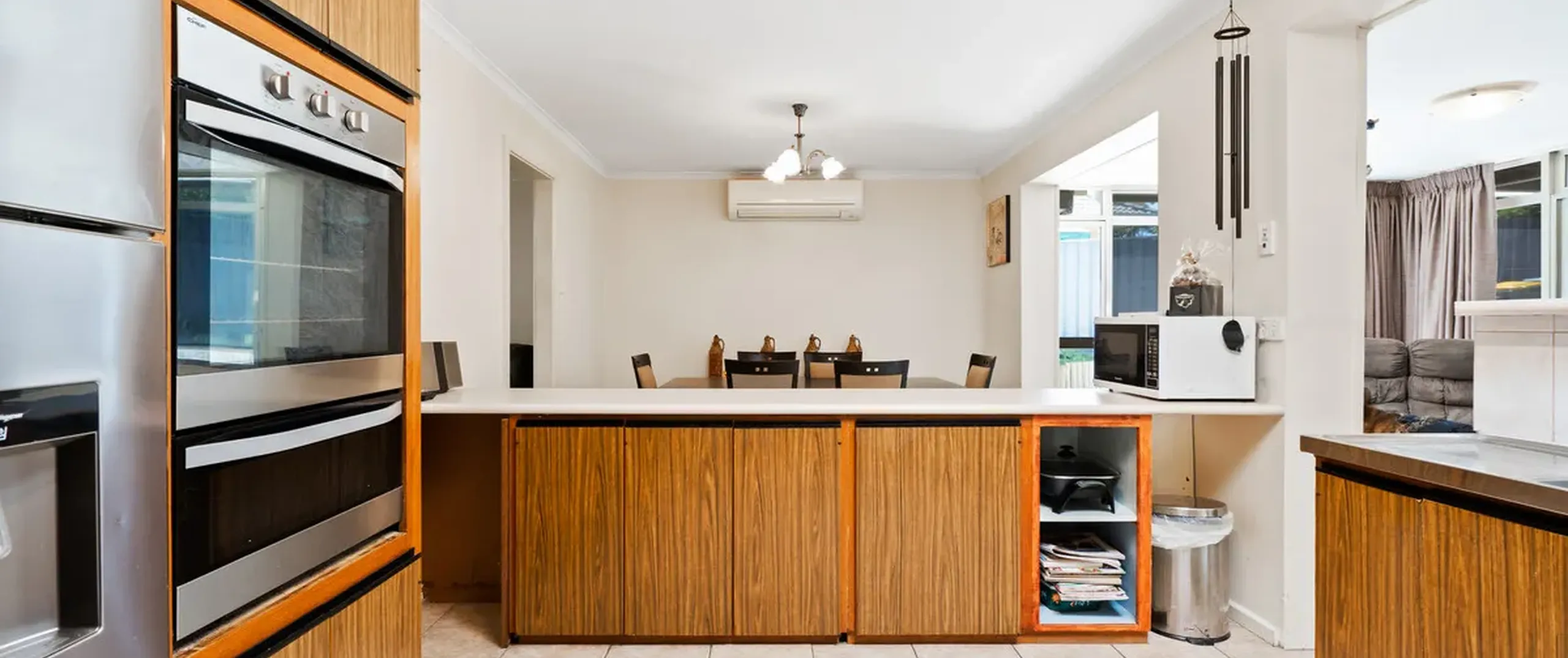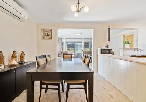 - Dining area adjacent kitchen with split system air conditioner