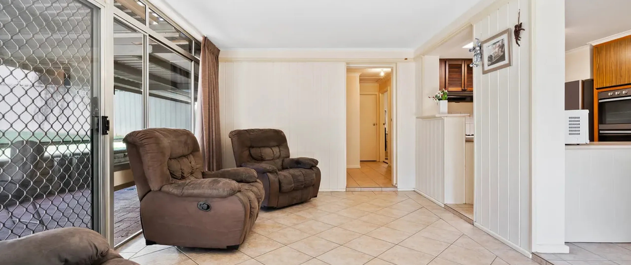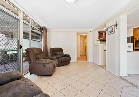 - Step down into the living area that boasts natural light and offers seamless flow to the undercover entertaining area