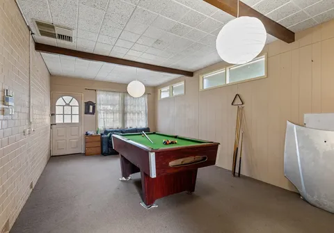 - Family room with air conditioner and utility room, doubles as the perfect games room