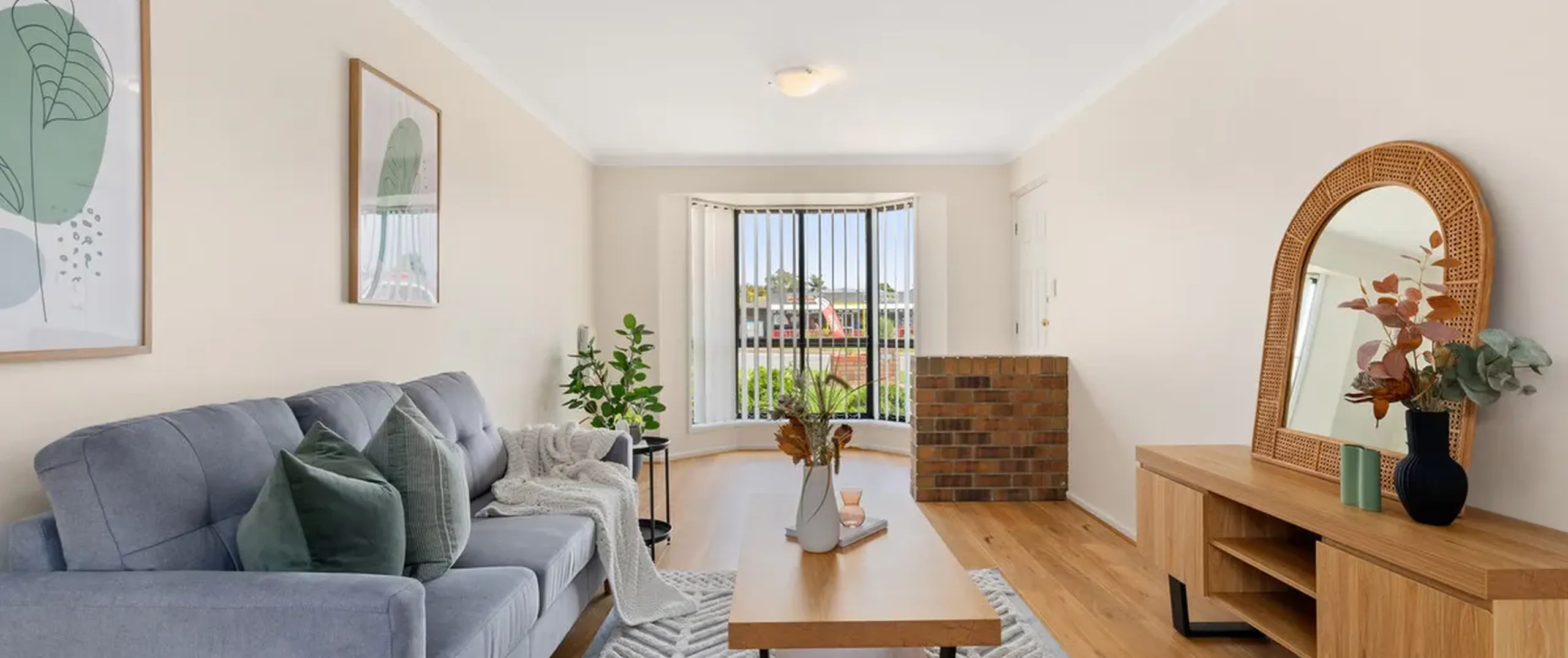 - Spacious lounge room upon entry with heater, external sliding door access and abundance of natural light from the bay window